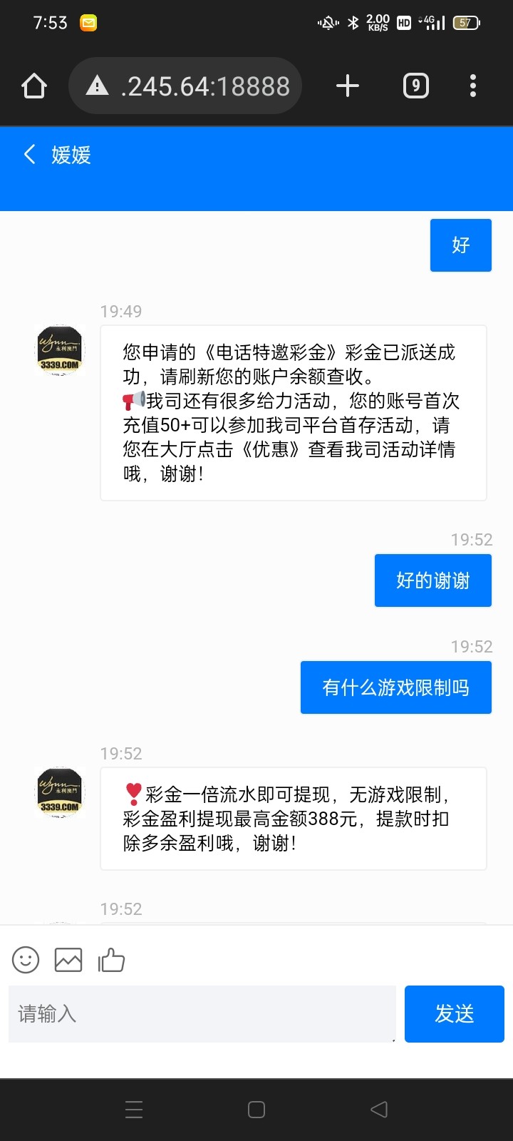 感谢老哥虽然电话彩金没有碰到,但是领了3块钱的vip彩金打到100出款了