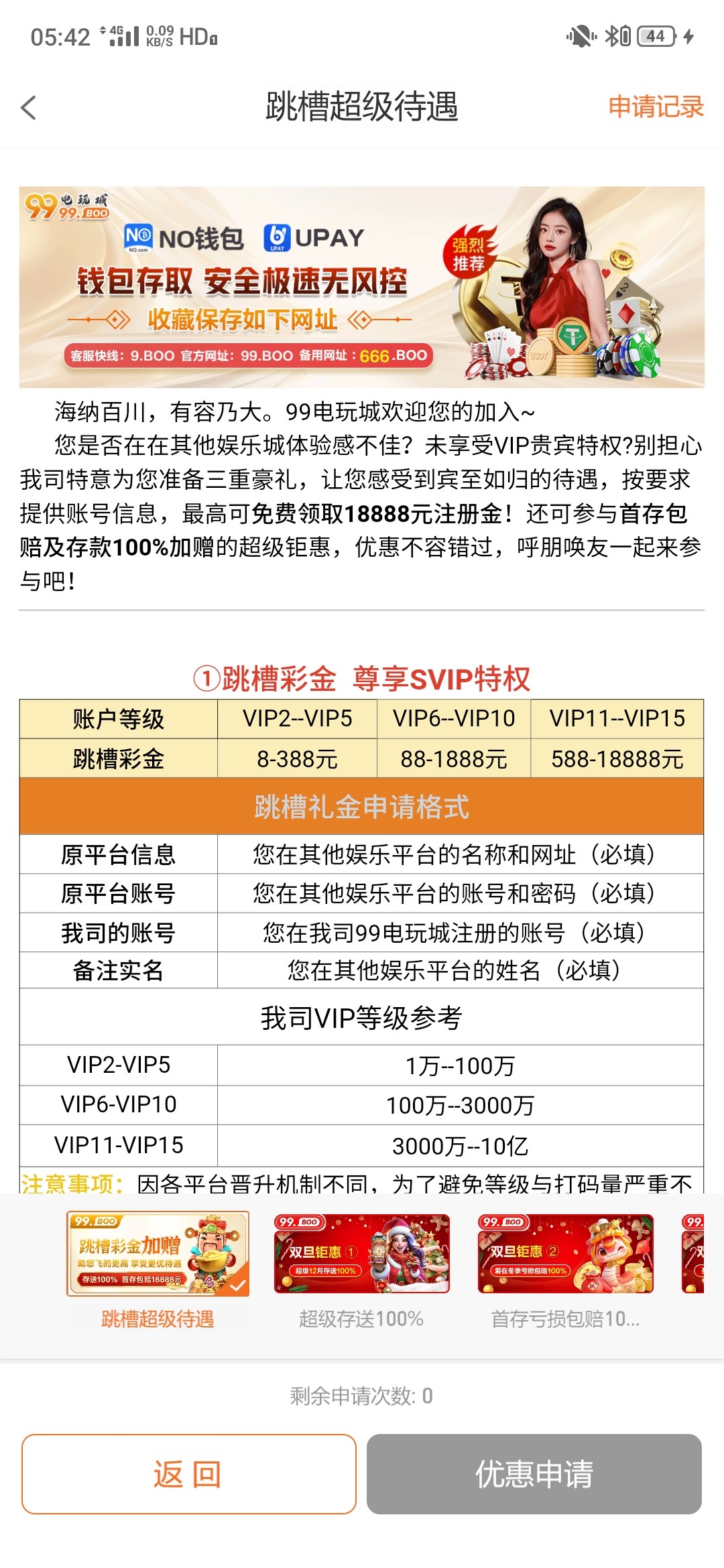 这个99娱乐城,上传了一个开元台v5的给了58,出了135,还有个66PG电玩城(就是前天有个老哥发的帖子)上传一样的开元台给88打死了没出。还有老哥知道哪些台子有跳槽金吗