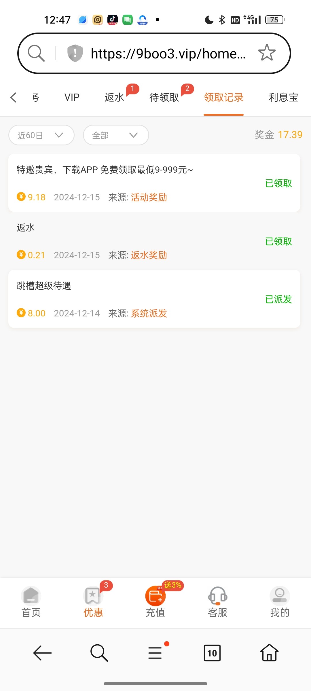 登录领取特邀彩金还有跳槽金可以申请