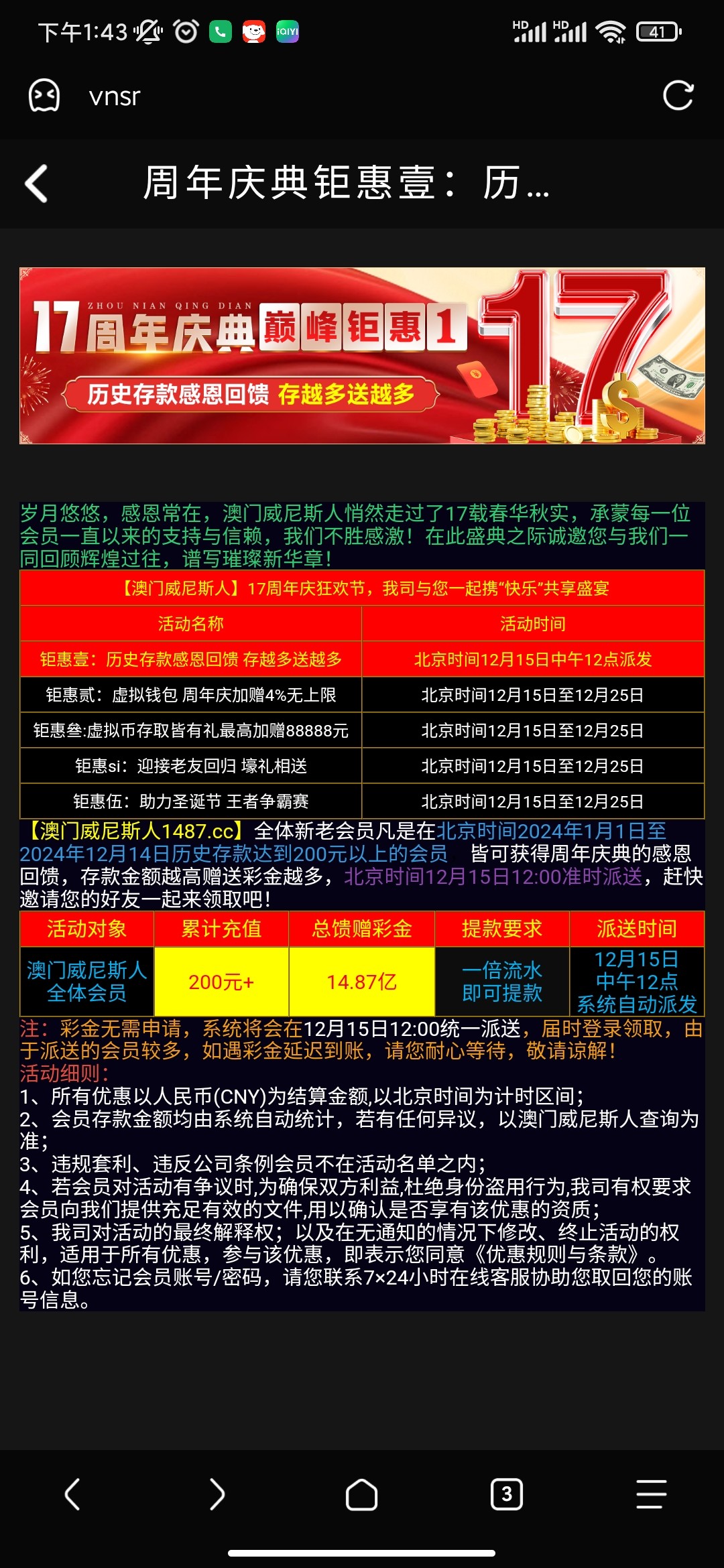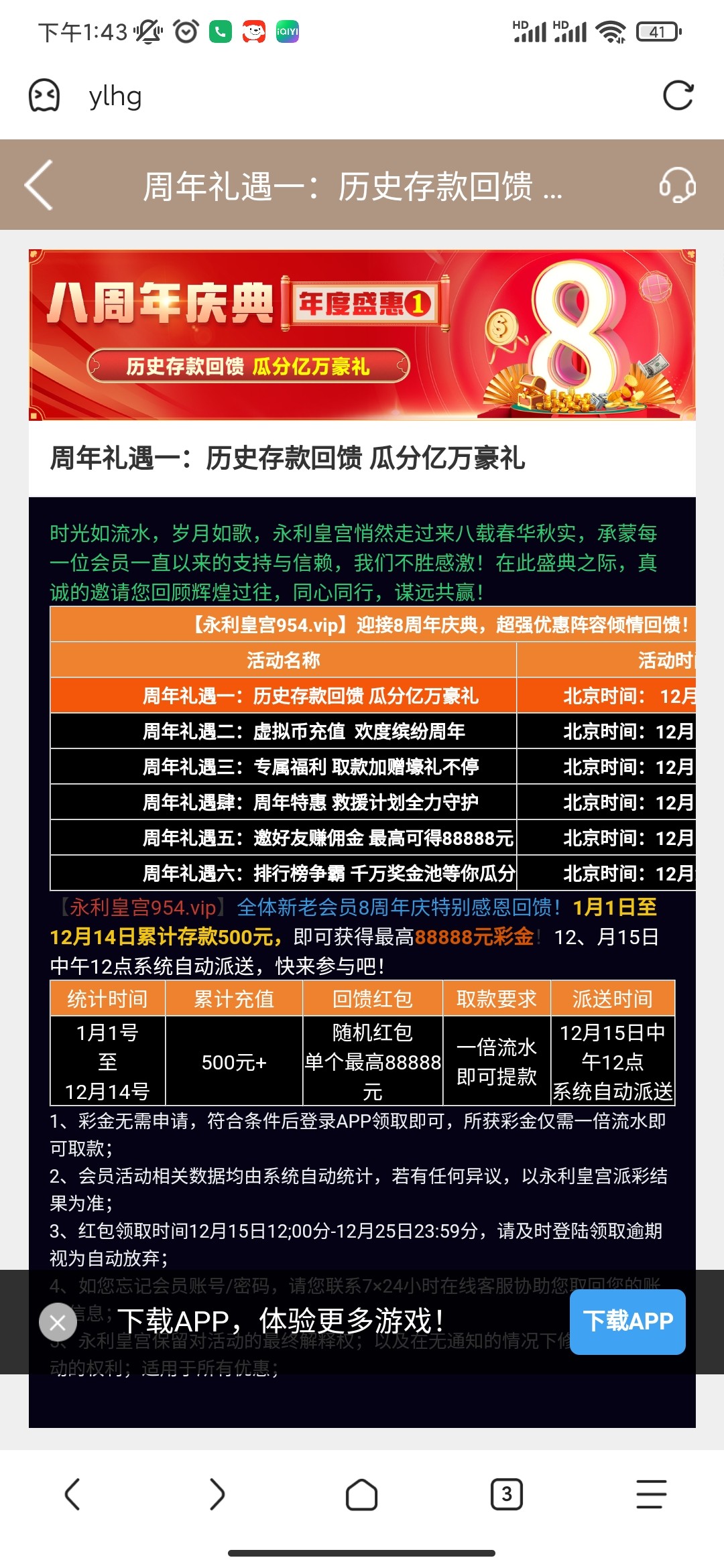 54永利皇宫和威尼斯5845今年充值符合活动的上去看看两个台今天周年庆回馈