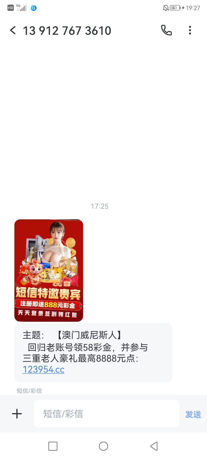我刚来短信 送了58