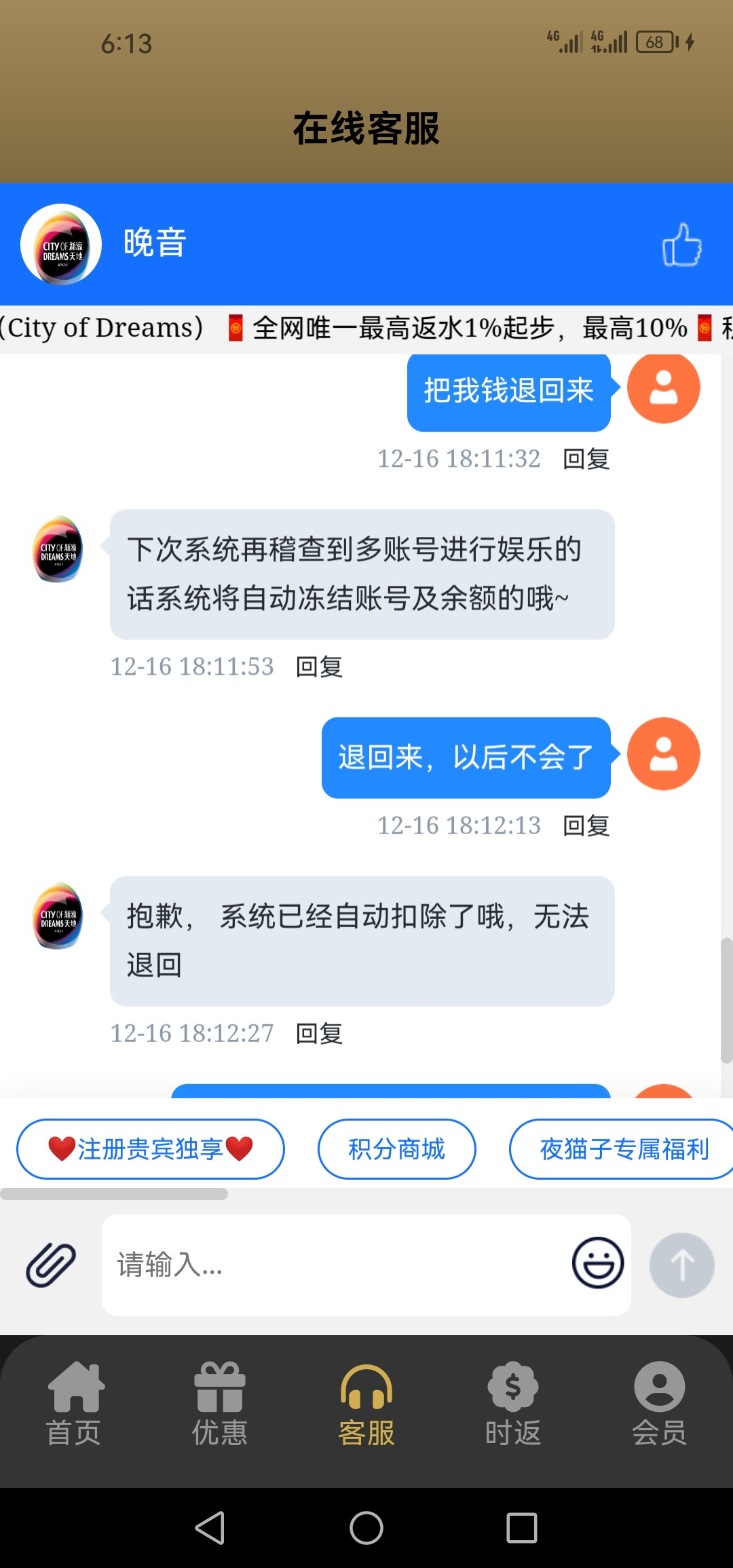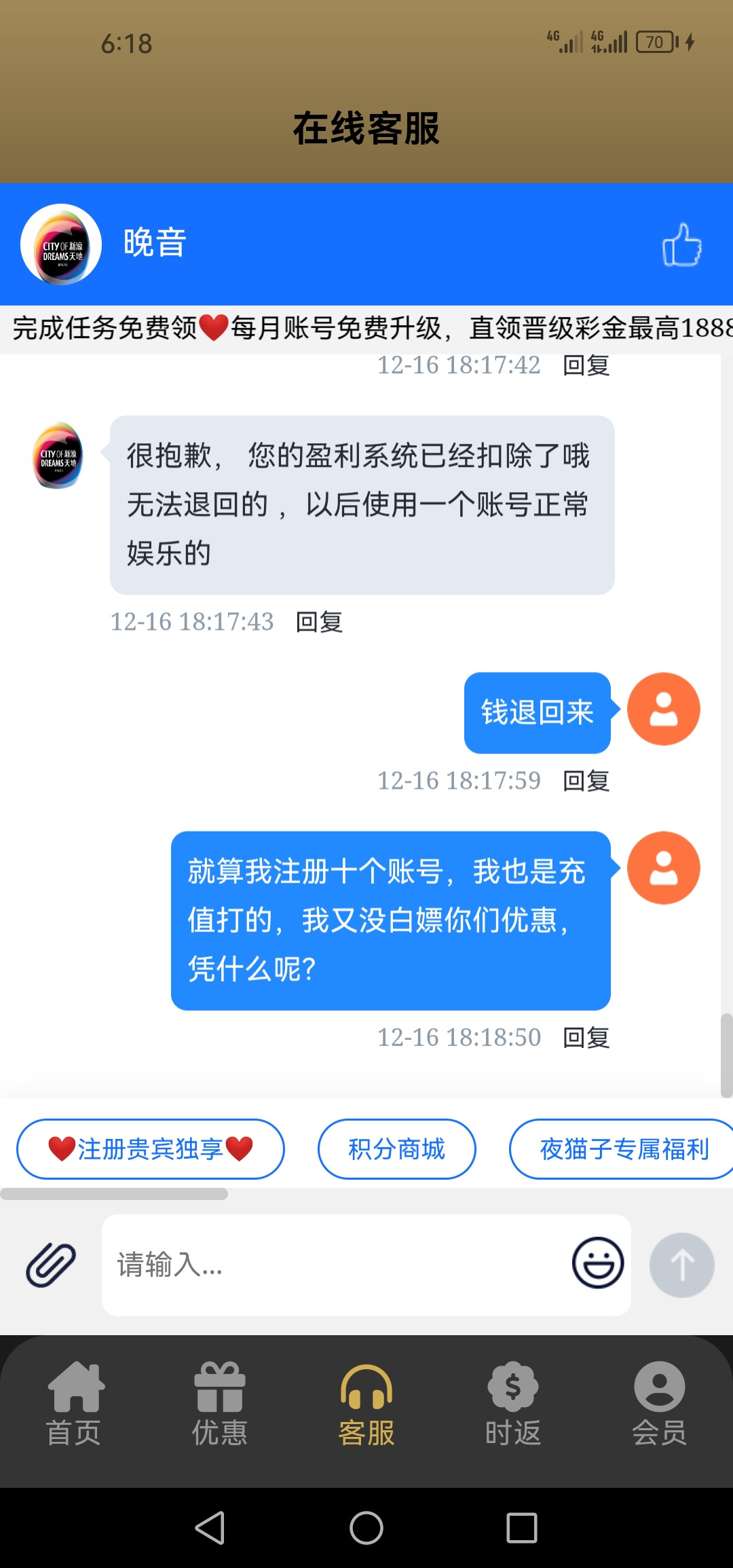 这个新濠天地旗下有个黑平台,名字我忘了,去年年初充值玩被坑了800多不给出款