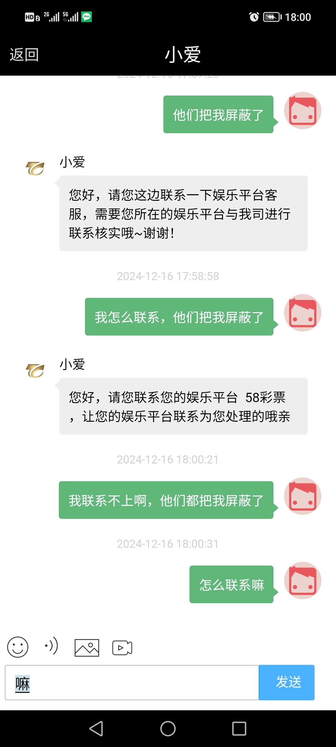 58彩票这个大黑逼台真恶,撸了它了一百多块钱反手举报我TO钱包,一点格局都没有,真的是大黑台!