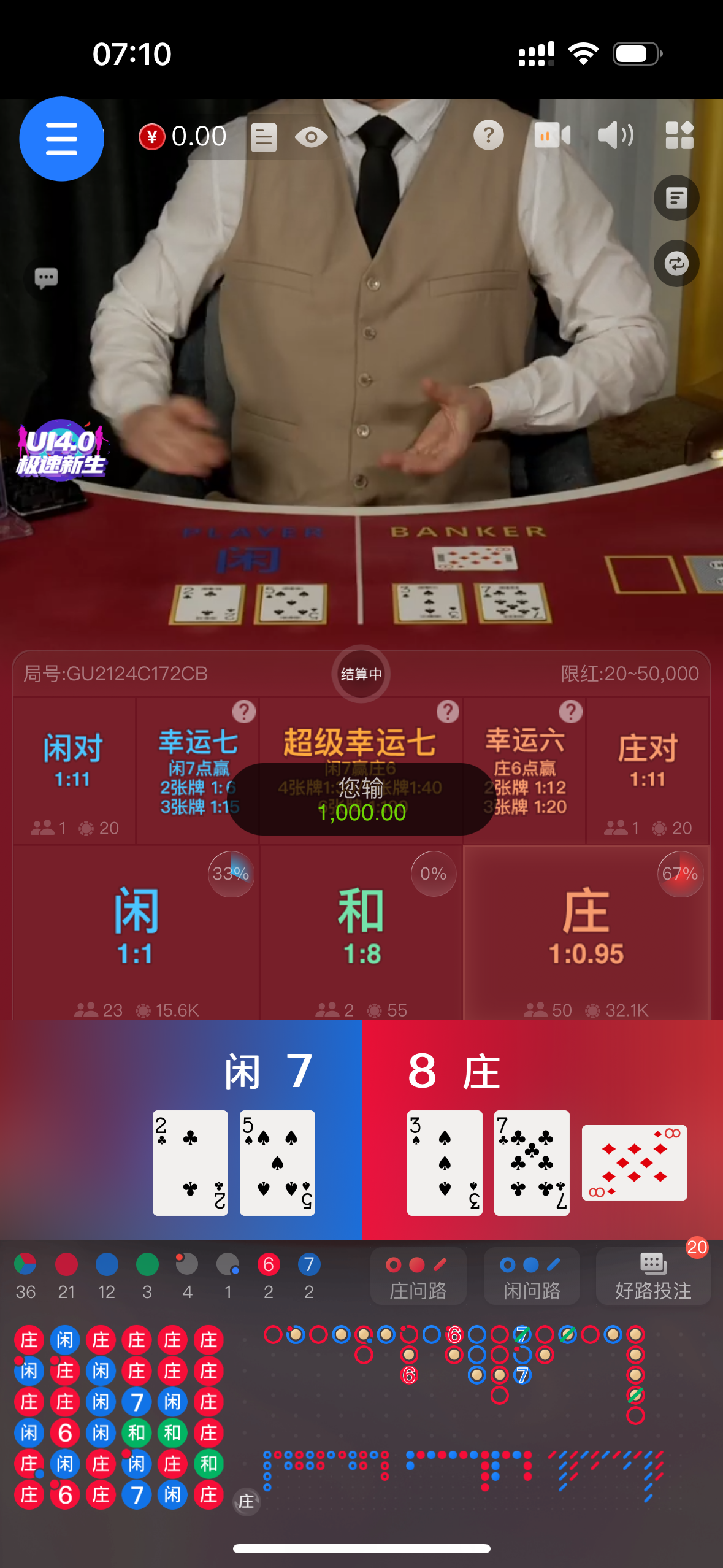 又打了一个通宵,但是这个通宵我并不好过,本来凌晨刚开始的时候输了1000,然后我又上1000打真人,本来打到1900了,我想着再下100回本就跑,结果后面买几把一把都中不了,再然后一直上分一直干,一个通宵下来电子没爆过一次。输了7200睡觉睡觉。