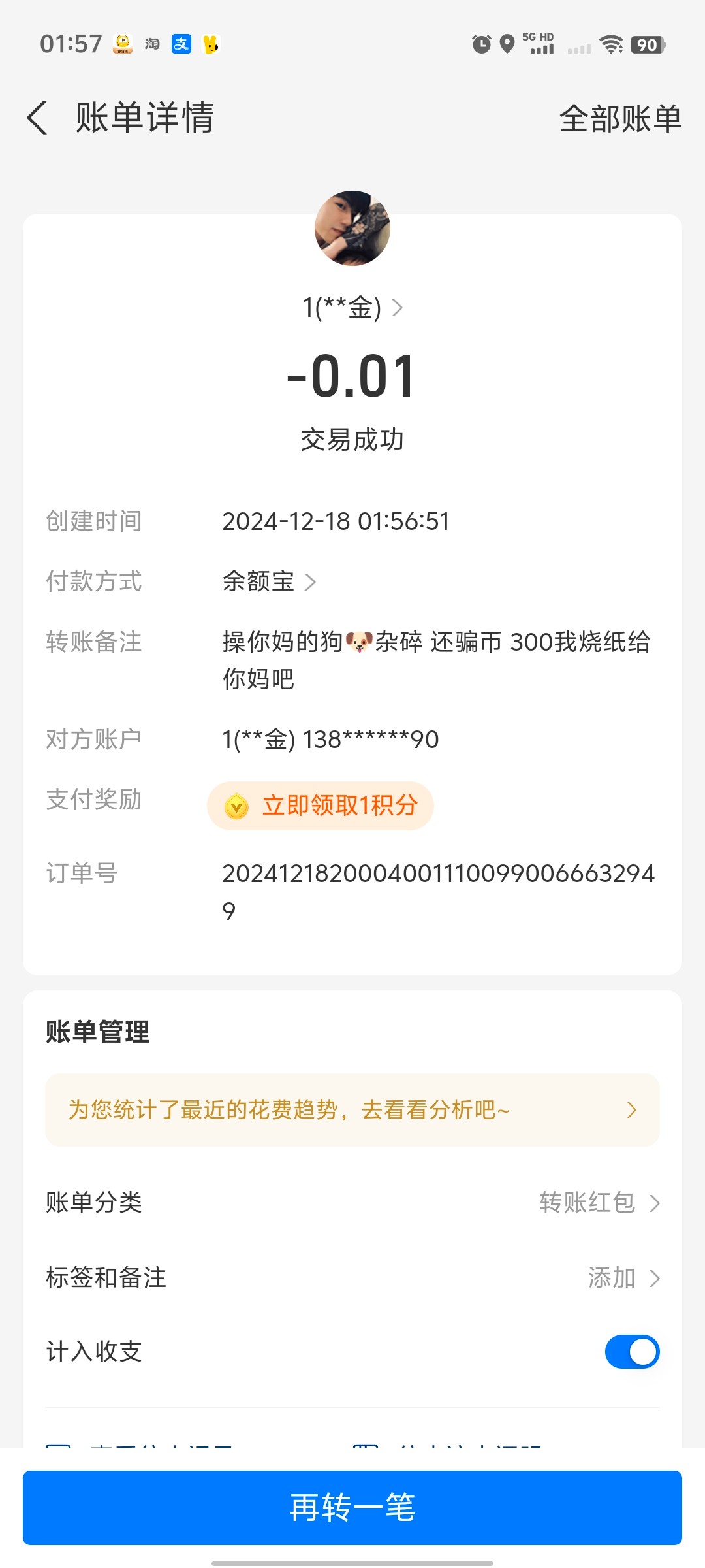 一眼假转账订单怎么可能没有电子回单