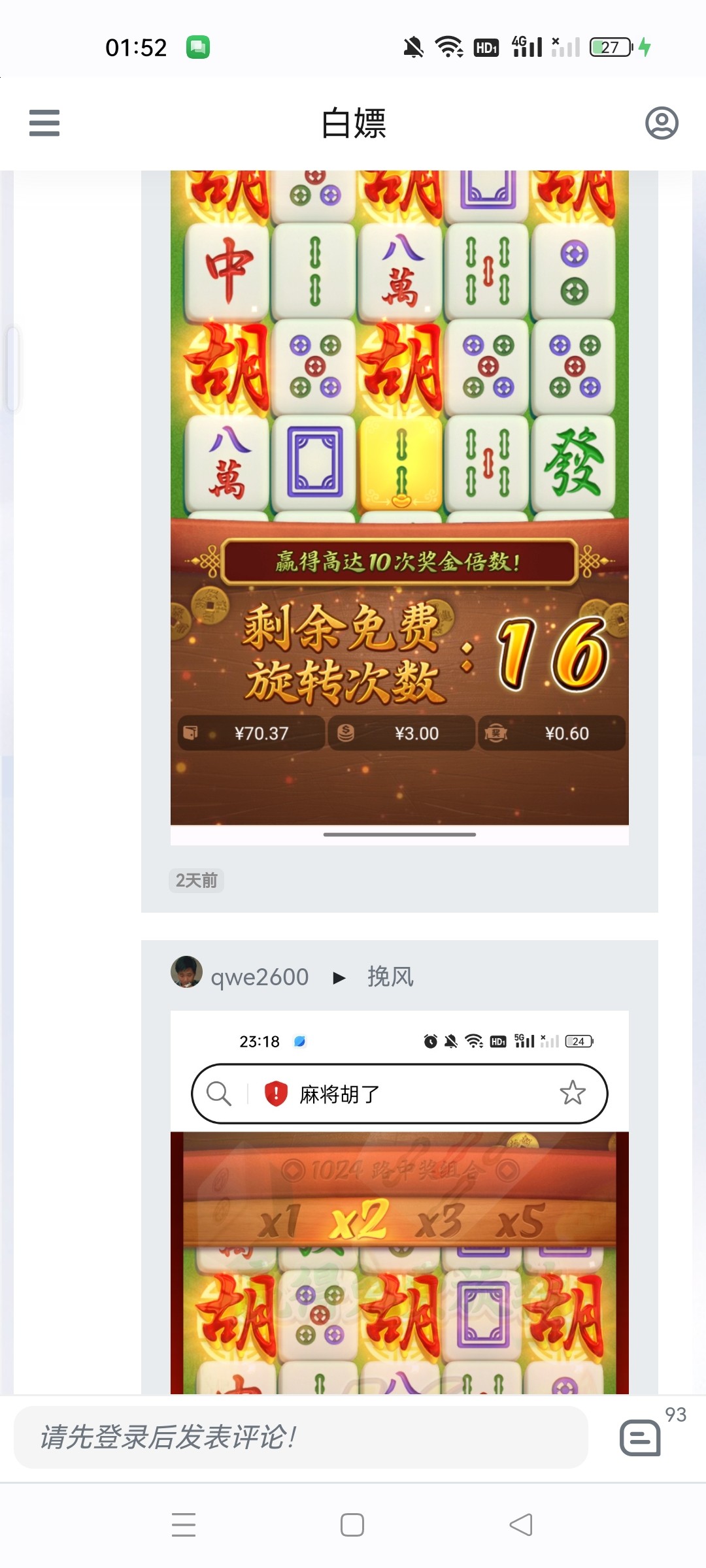 这个台子跟前两天那个澳门金沙注册送88差不多,麻将都是清一色的五个胡,充了20块钱,给了七八次免费就是上不去50,打了一个多小时一直在20到40多之间徘徊。直接去真人梭哈打110提了,想着不会到账的,最后还是到了。