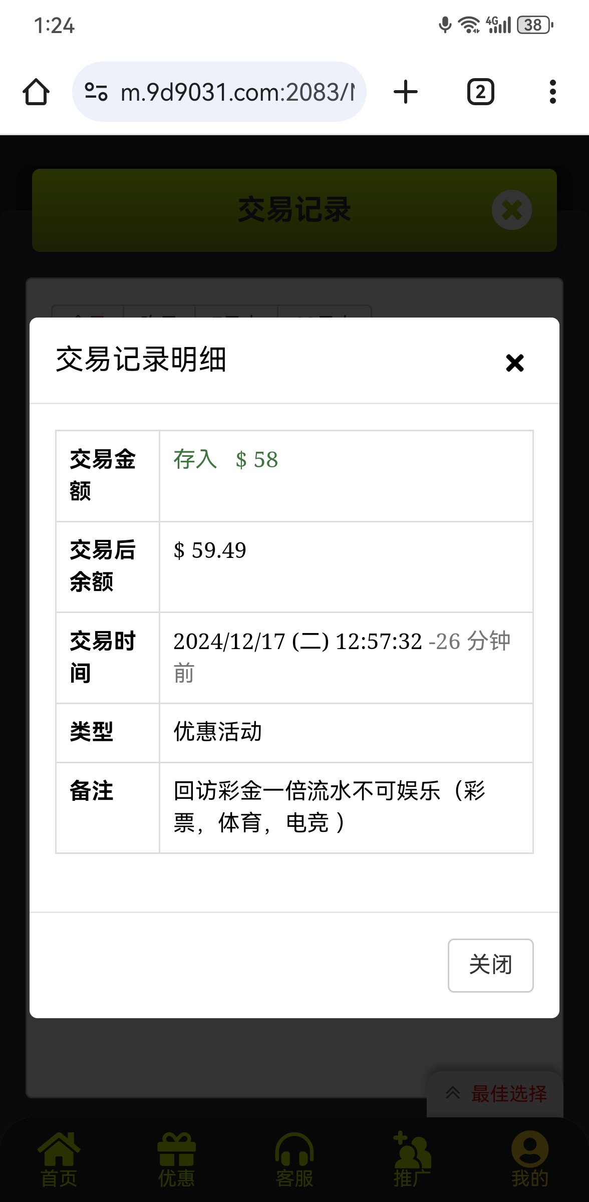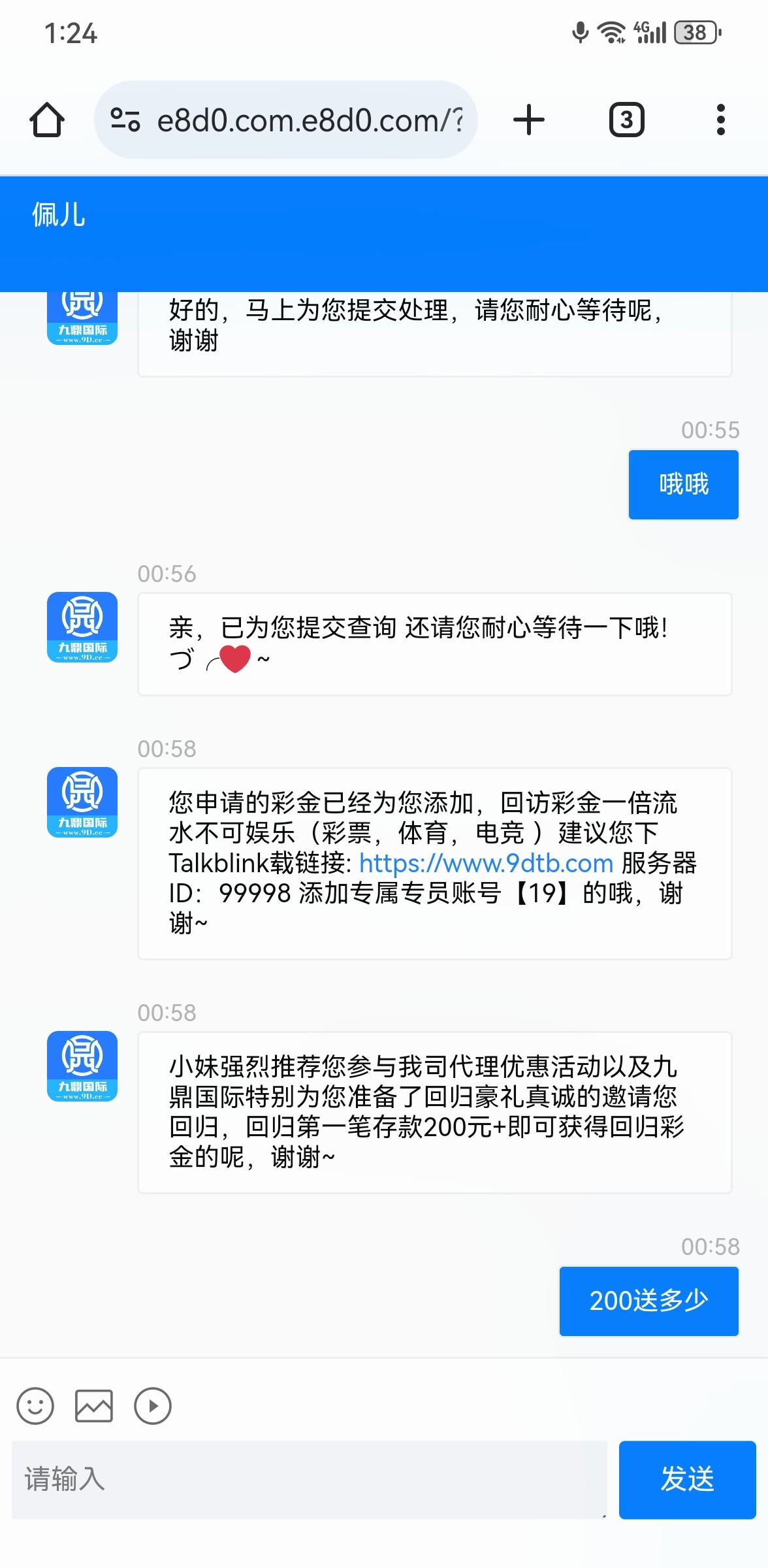九鼎国际之前充过几万无聊登上去找客服碰瓷电话彩金送了58,出了124网址9d.cc