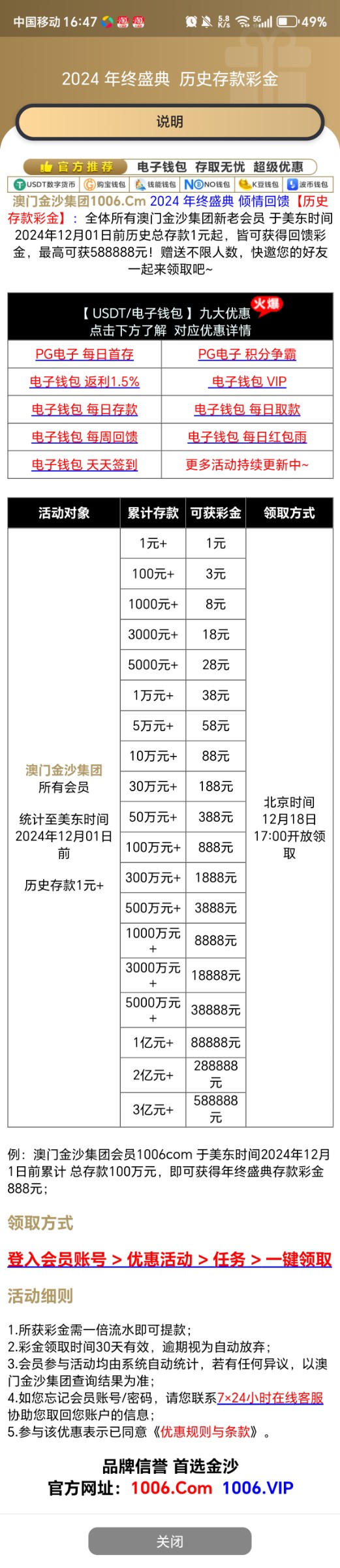 今天回馈历史存款,20号回馈投注,有号的老哥可以去看看,网址1006.com