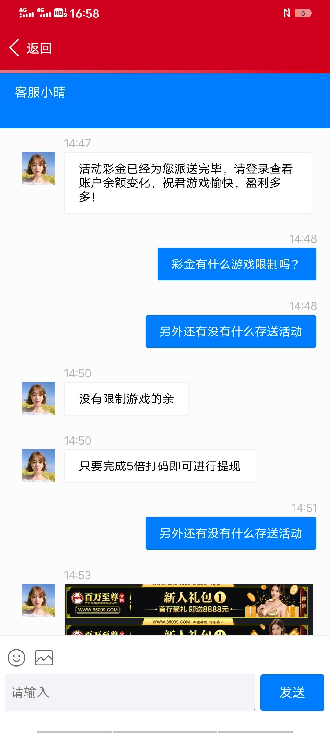 要充值了,您好,新会员赠送88元彩金活动已结束,下载APP首存100元赠送58元,请您充值好后截图联系我们这里申请!!谢谢