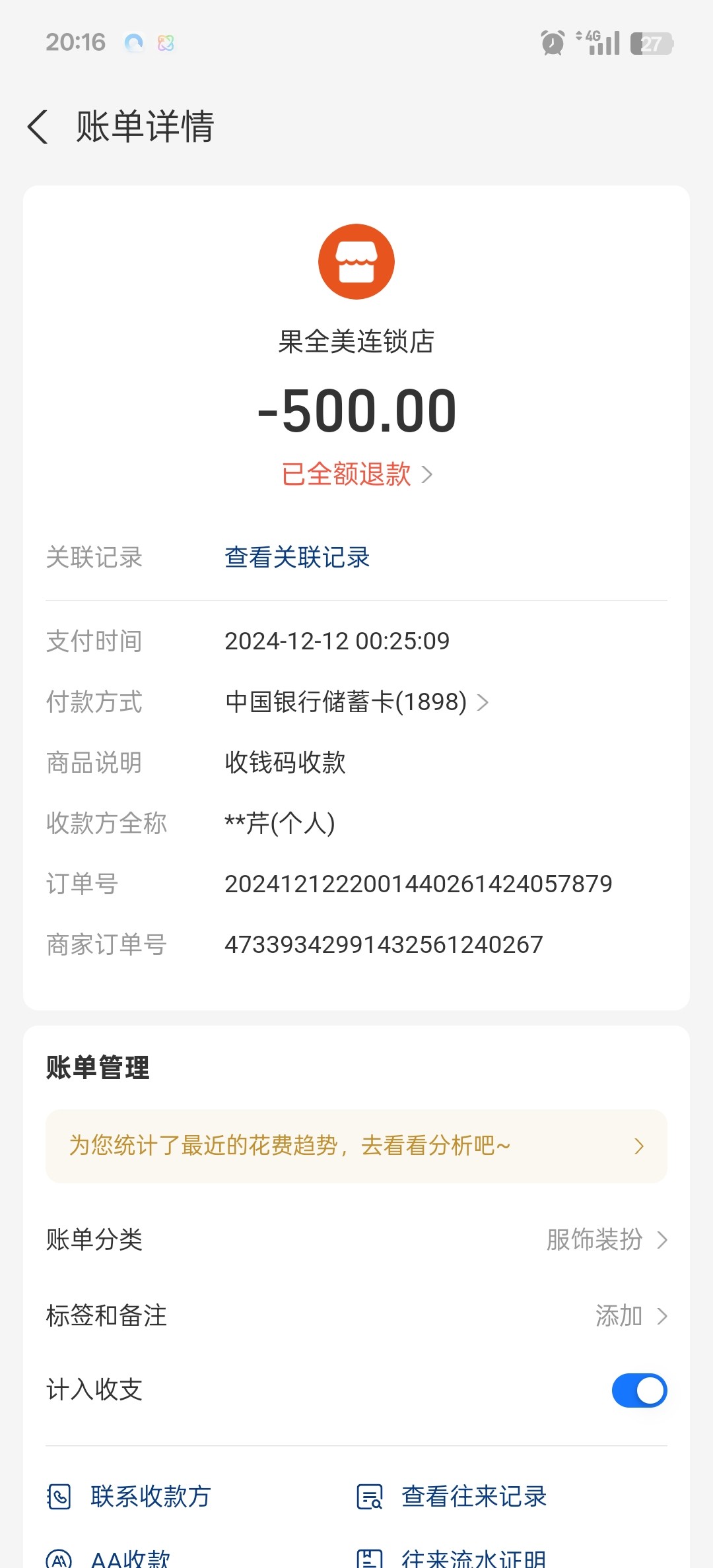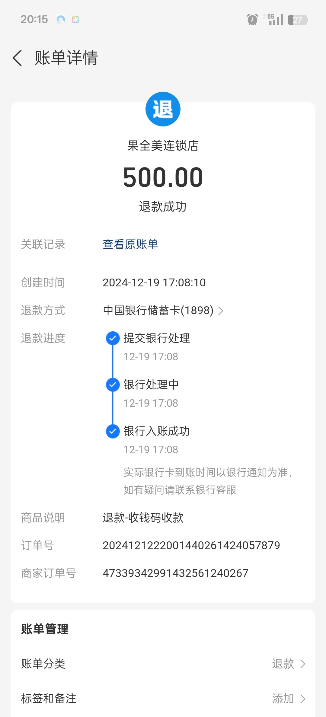 我这个收款人和你那个是一个 老哥 教教怎么退