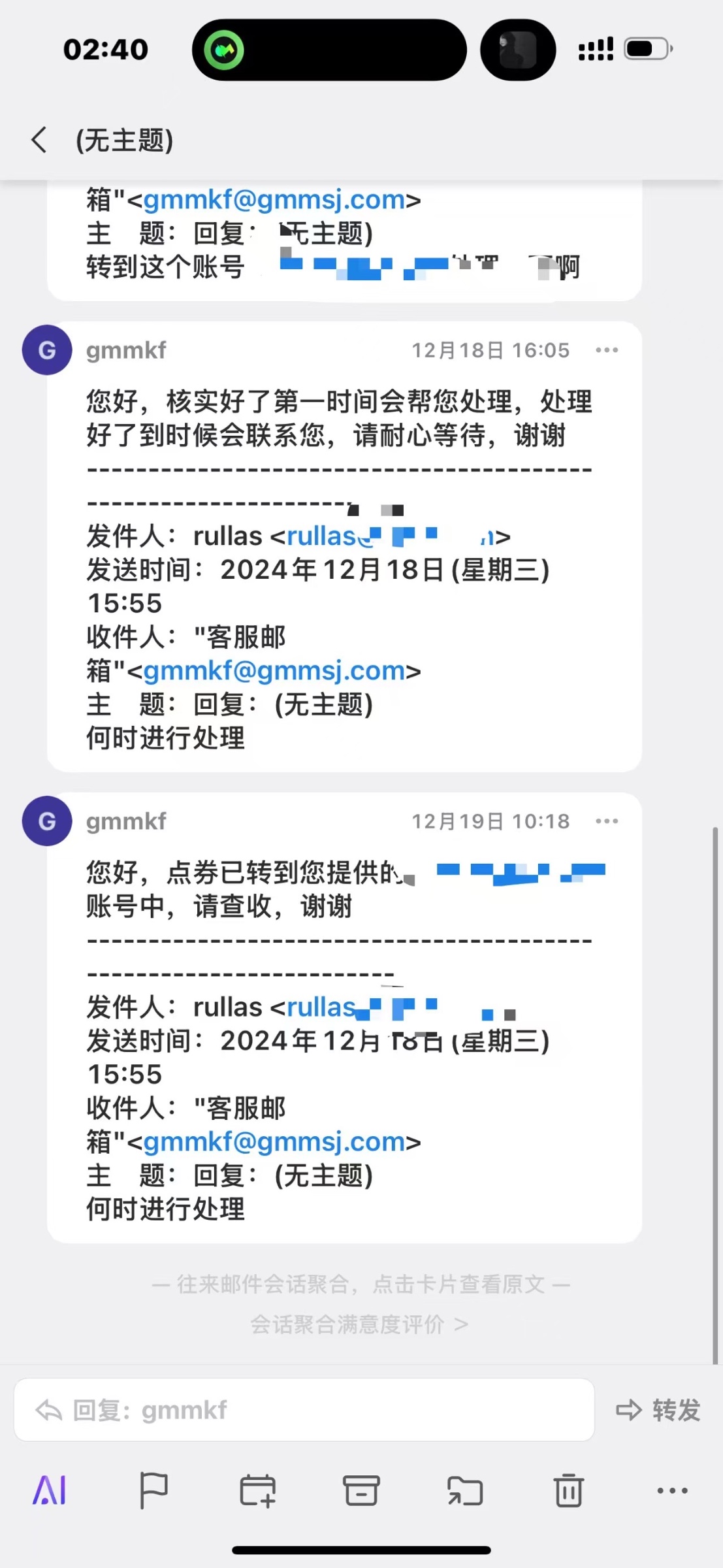 gm 你买了之后 就赶快去找gm客服说你被骗了 文本自己写 完了 给他支付宝的订单号让他去查 要是充值的点卷还在账户中没使用的话 客服就把那个号的点卷冻结了 之后你发邮件给 gm官方邮箱 不过就是要手持 可以退的 一定要注意是 刚冲就去退 退的话也是转点卷给你 你去咸鱼卖 这样