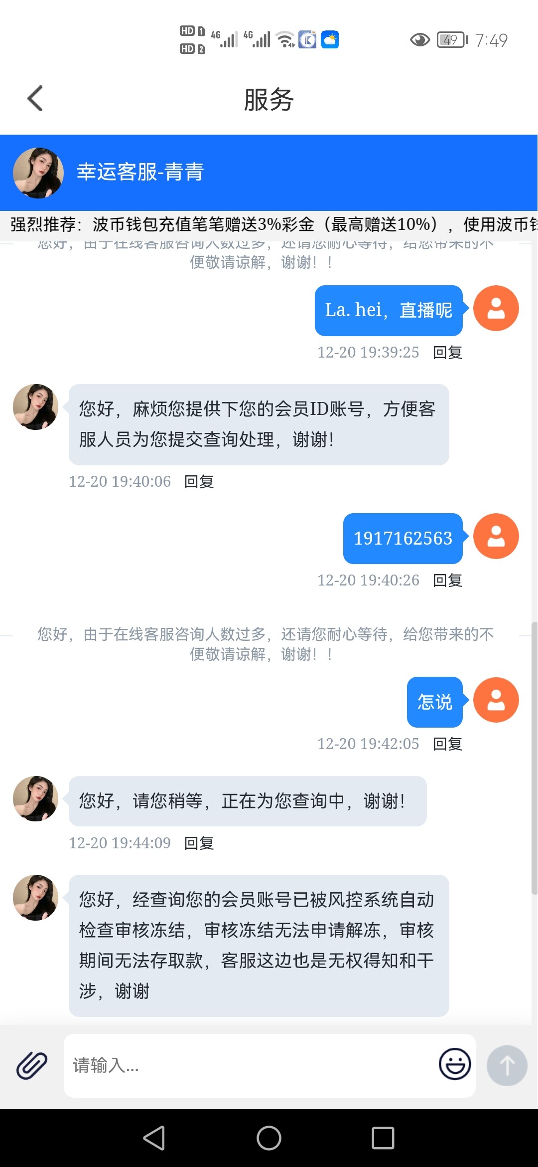 我上去一看我账户还有150 被拉黑状态