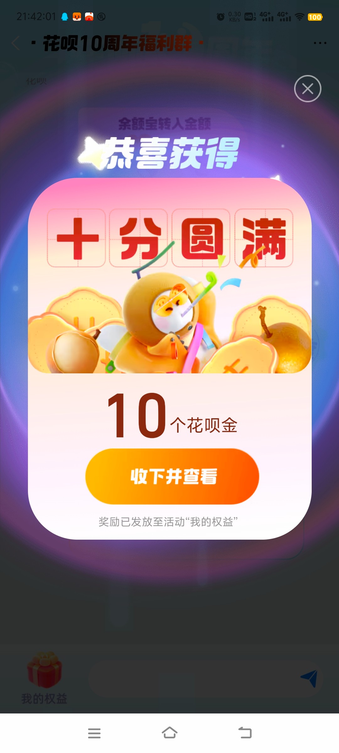 10个花呗金,等于人民币0.1,感谢分享