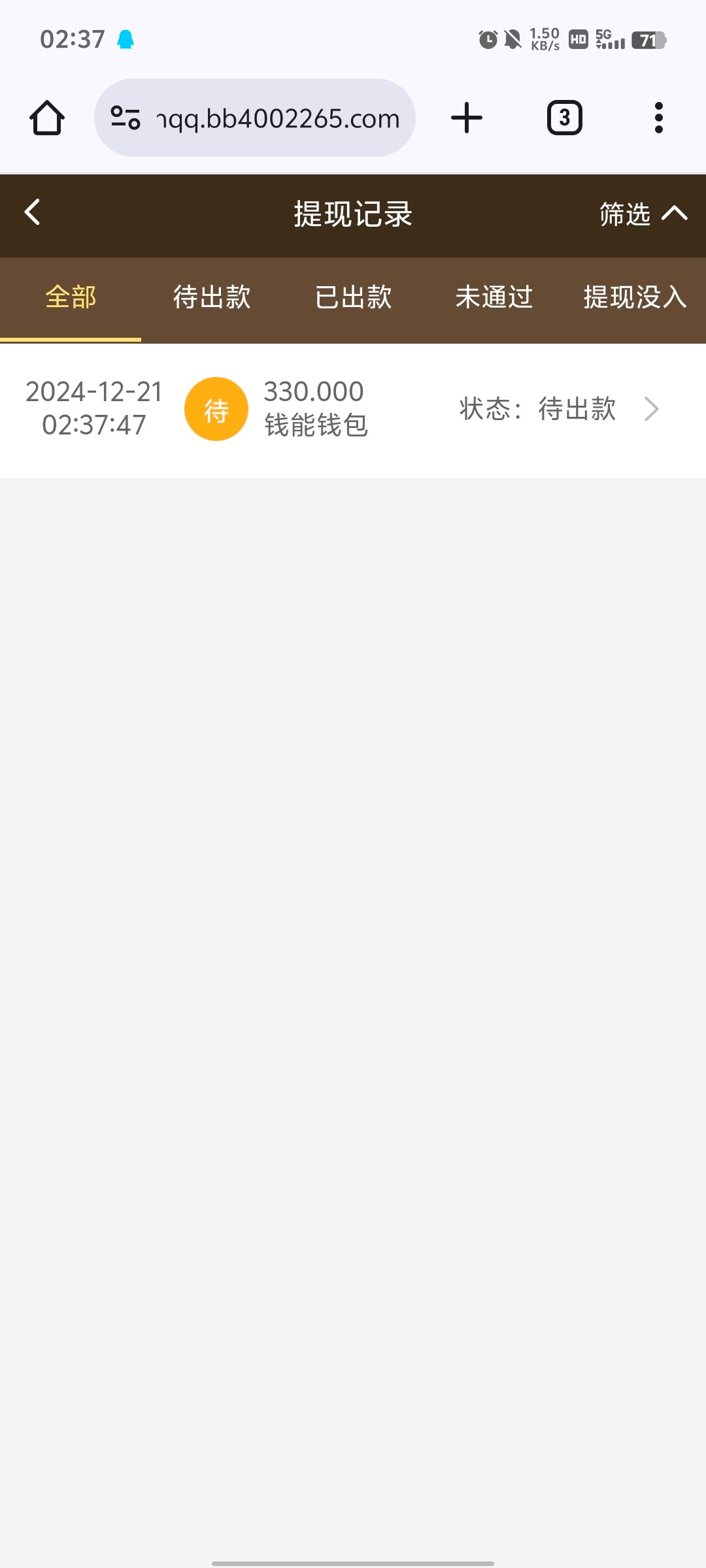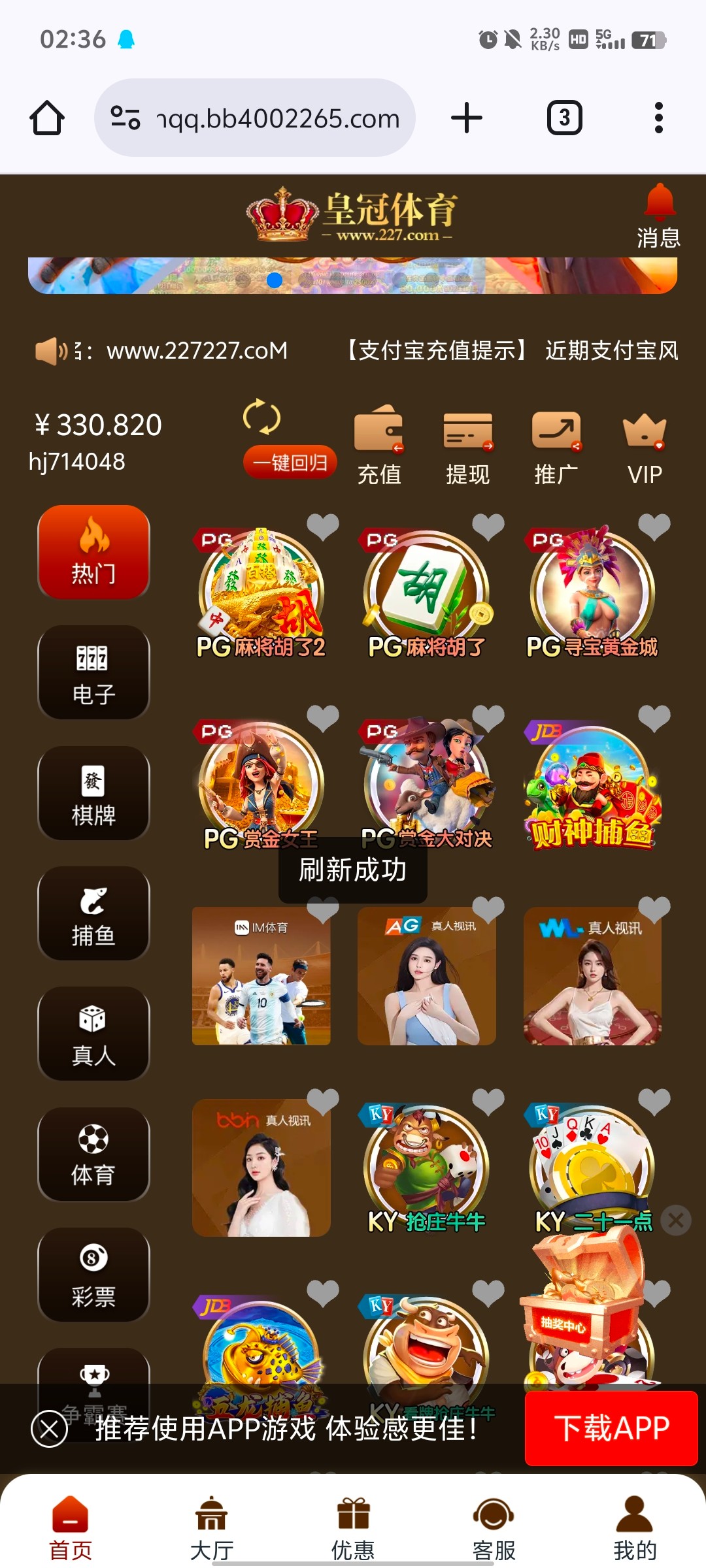 今天翻以前自主特邀的帖子 翻到227试了一下 领了37 没打出来 打完就退了 领取彩金的截图截不了了 103.108.41.33/#/地址在这儿