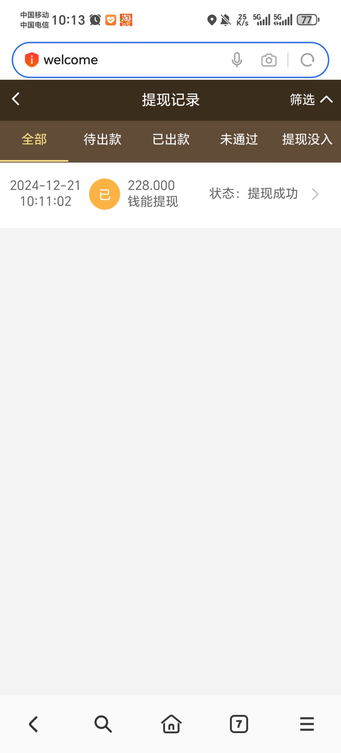 227确实有格局,上个月送的37干到500提现到账