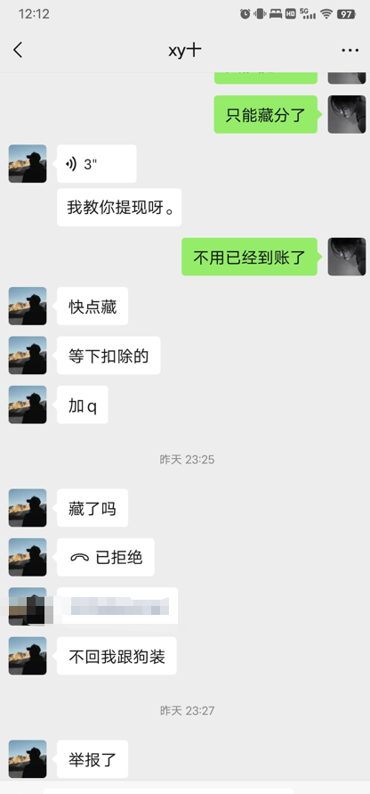 真是啥人都有的哈,老哥们还不容易打出来点钱就因为这种人好坏不分没得到他的利益就去举报,真的是很他妈的(下回记得凡是跟自己有关的信息记得打码)