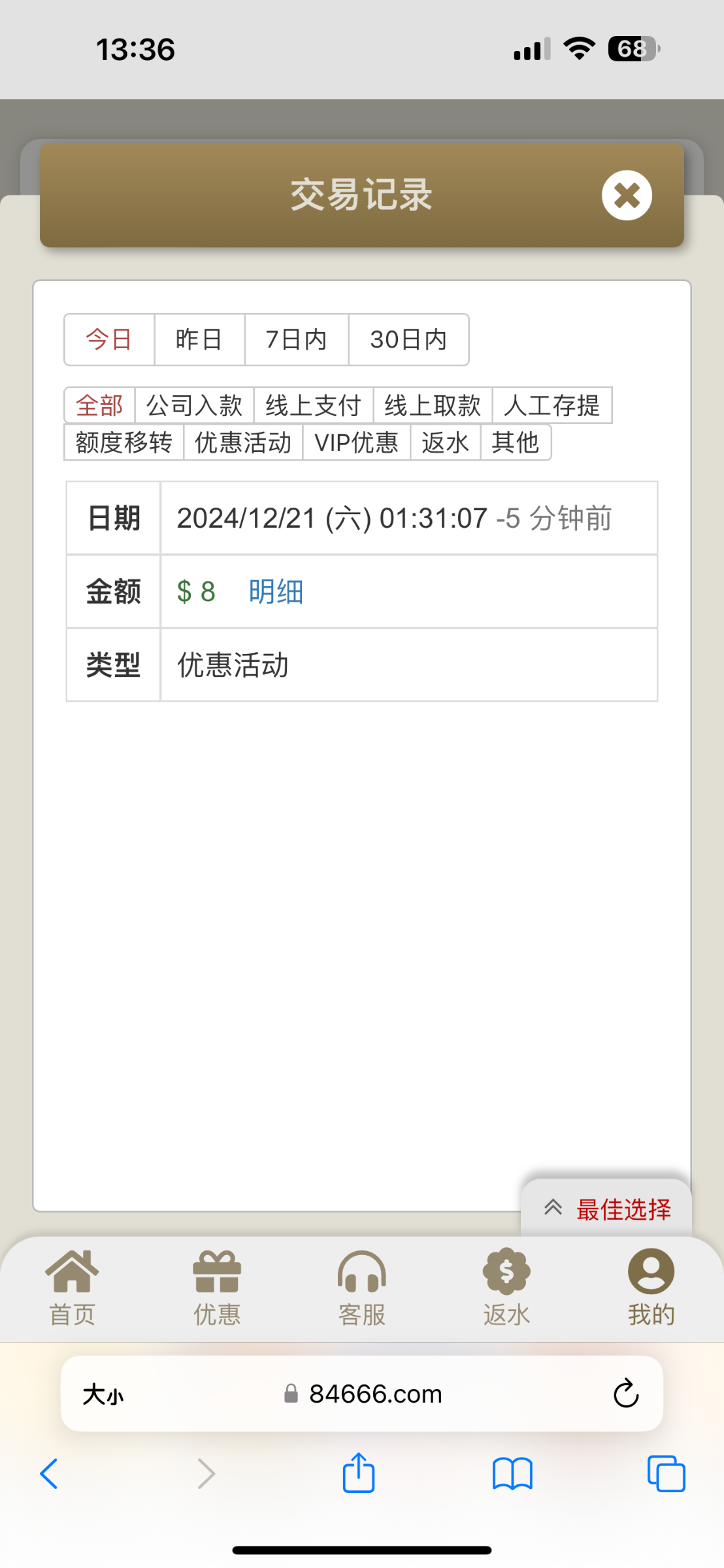 您好,恭喜您成为我司的电话幸运客户哦,特邀vip用户多存多送,没有游戏限制,一倍流水即可提款哦,还请您不要错过这次机会哦,您可以按照您想申请的彩金档次存款后再来申请哦!存款:100 送: 12存款:500 送: 38存款:1000 送: 88存款:5000 送: 188存款:10000 送: 388存款:30000 送: 588存款:50000 送: 888存款:100000 送:1888存款:200000 送:3888存款:300000 送: 8888