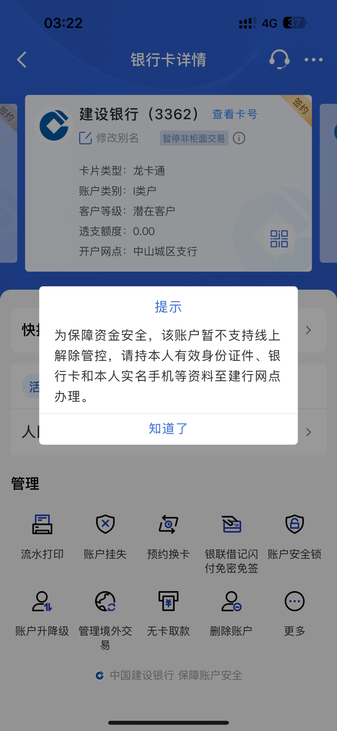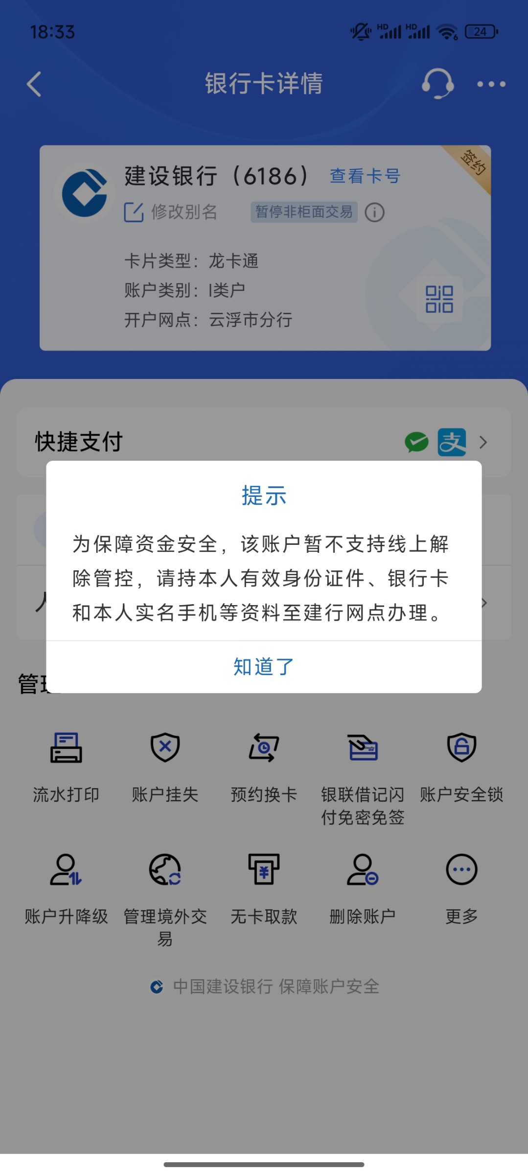 我的建设也冻了不知道多久了,注销也不让注销,也不让办理新卡
