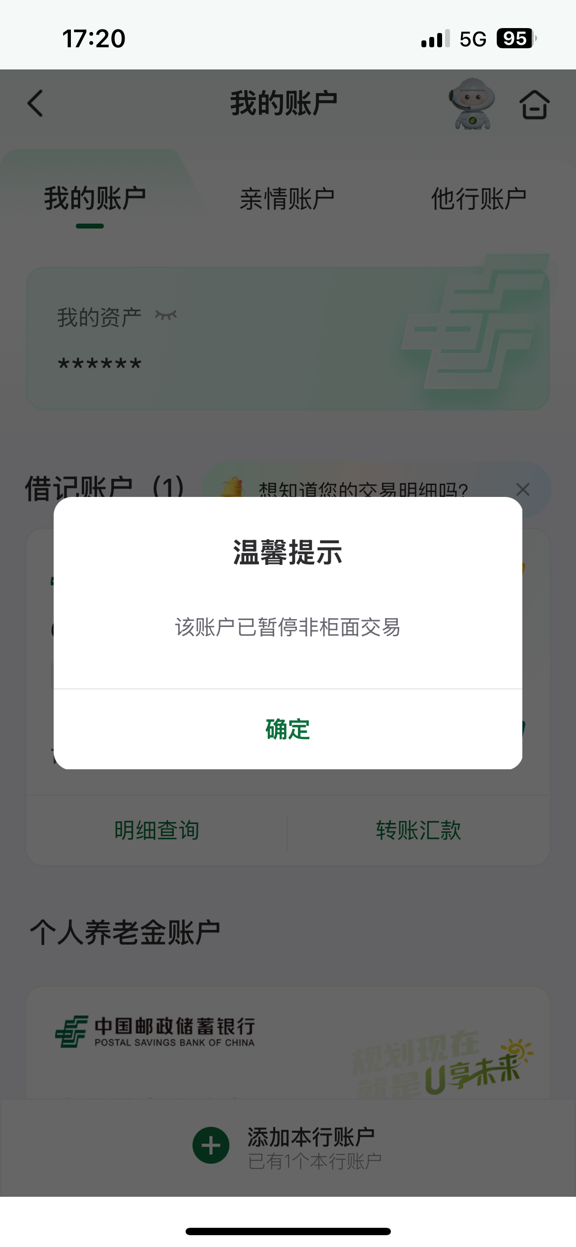 去柜台问问啥情况,以前我也是这样,她说我交易频繁,签了个字,就给我解开了,但是限额了。