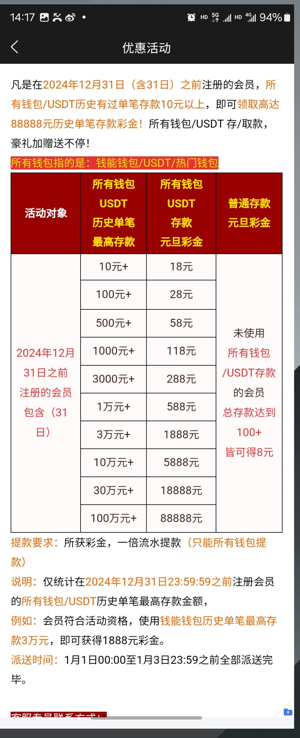 @wang3047 ,你是没看清活动吗?人家都说了所有钱包跟usdt