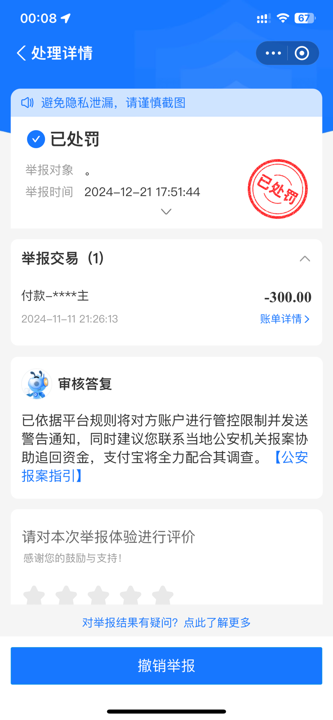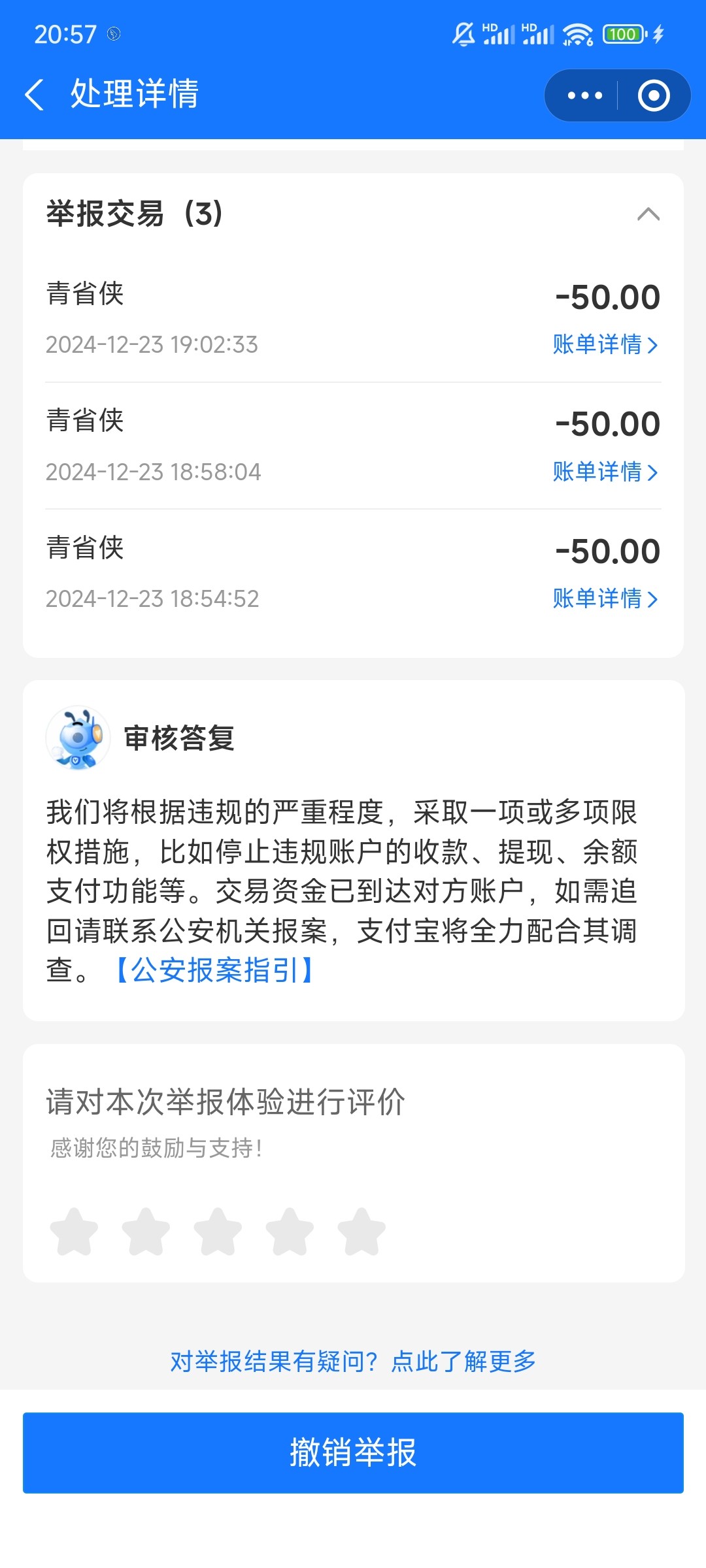 a2466975378 ▶ guangyuying 老哥,你的退了没有,我昨天晚上举报的 一下就成功了,不知道能不能退 2024-12-24