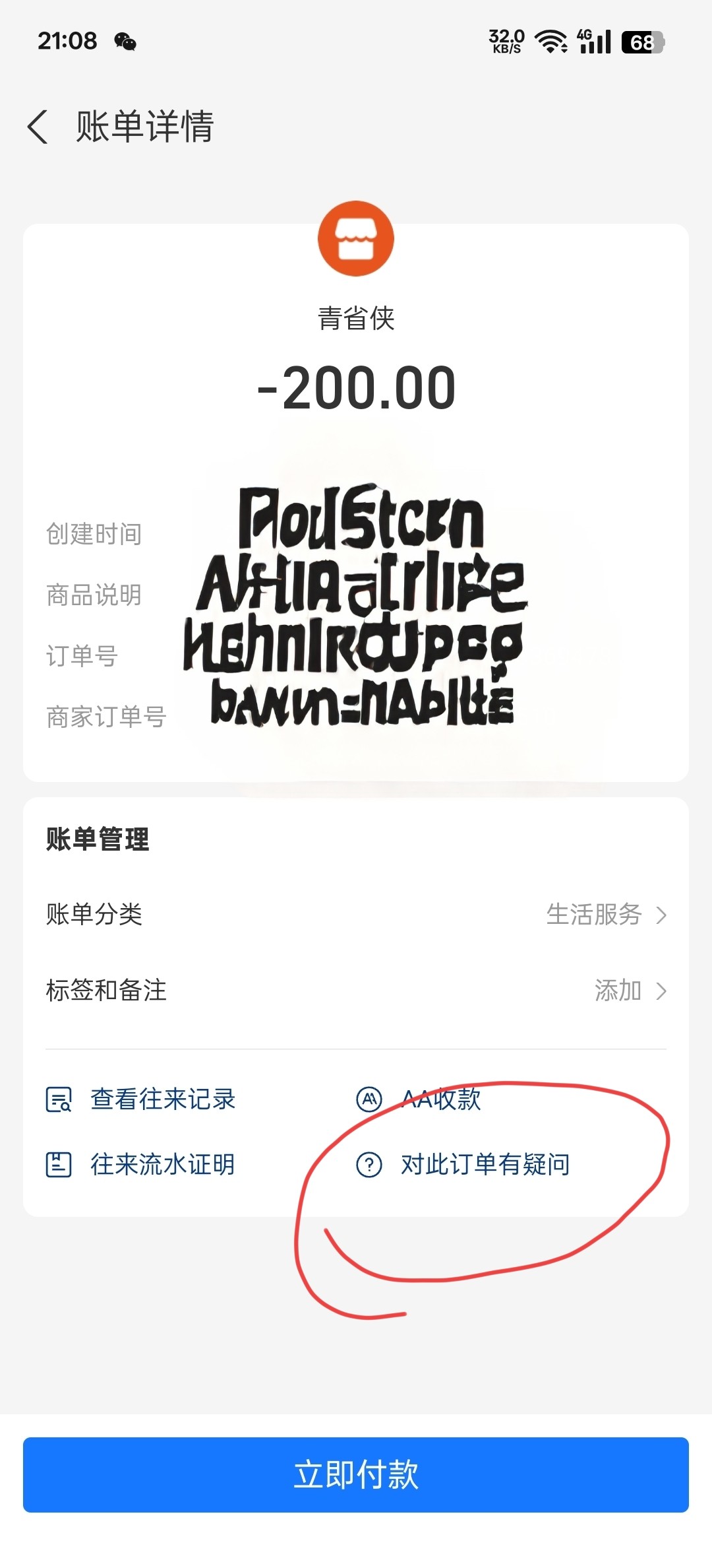 付款二维码是我发的那种图片。收款商户是我列出来的这几个乱投诉的话,很容易自己支付宝风控。当然了,退款是有概率,并不是说投诉了就能退。各位老哥可以试试。昌晨深-强盛宝--敖翔天基--顺搏-青省侠--帮帮排-