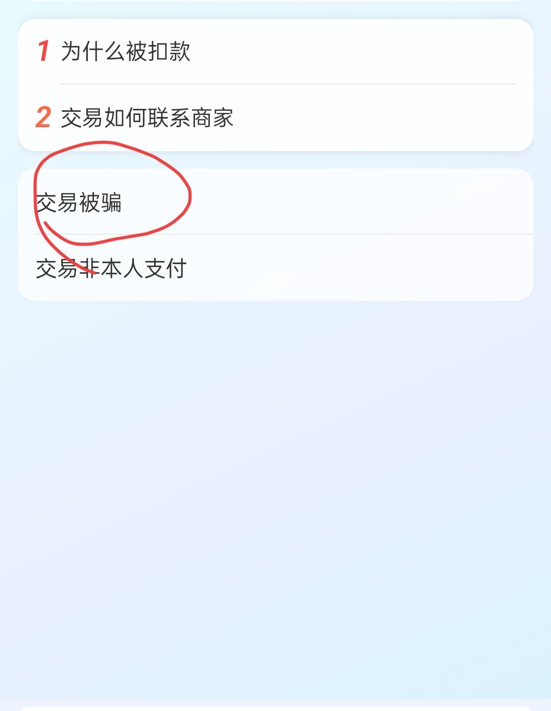 。点开账单,然后对账单有疑问,然后再点击交易被骗。然后就按照提示一步一步的举报。
