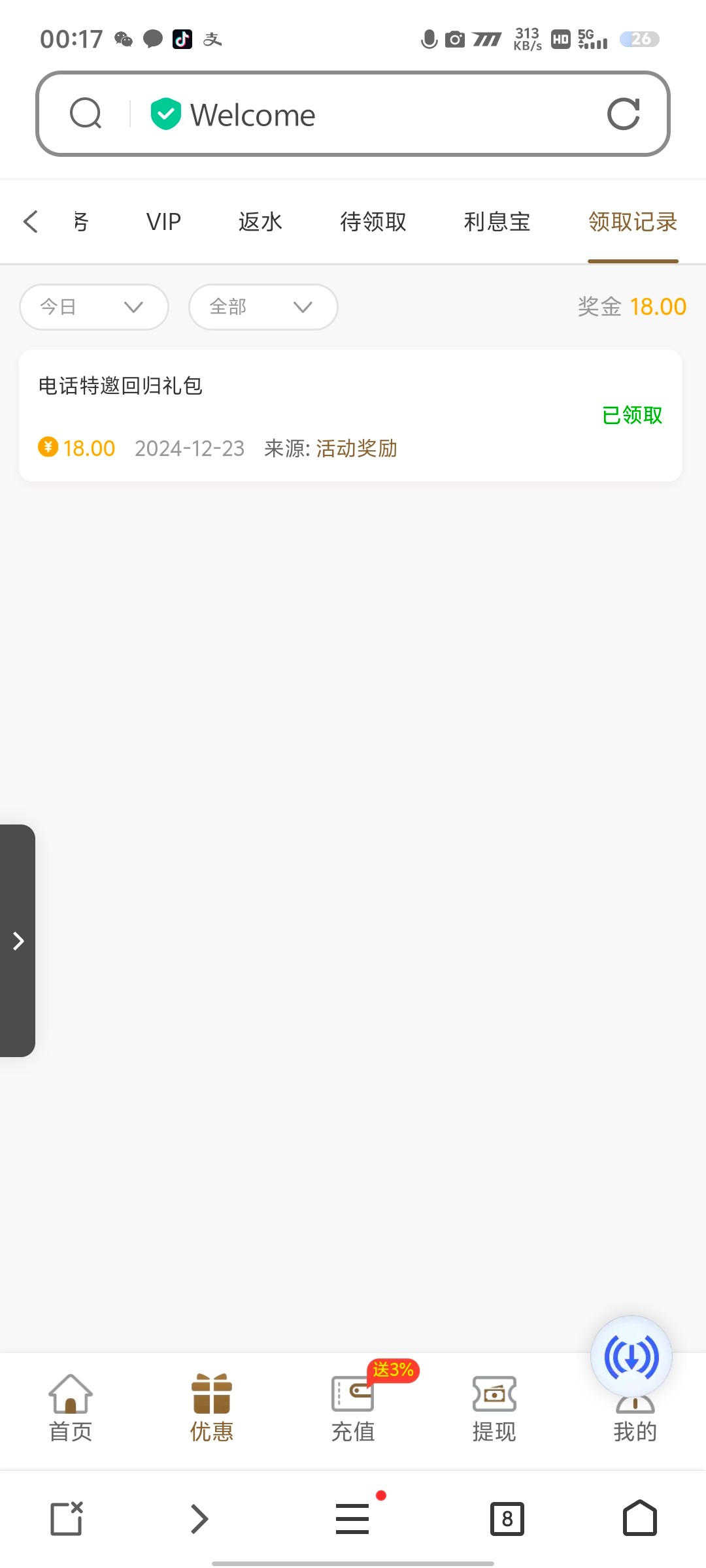 我是登录上去看到的 我是在待领取页面 我领取到了可能是我忘记接电话才有的 活动哪里也有特邀 好像要老用户才行活动这个我领取不了 说我不符合
