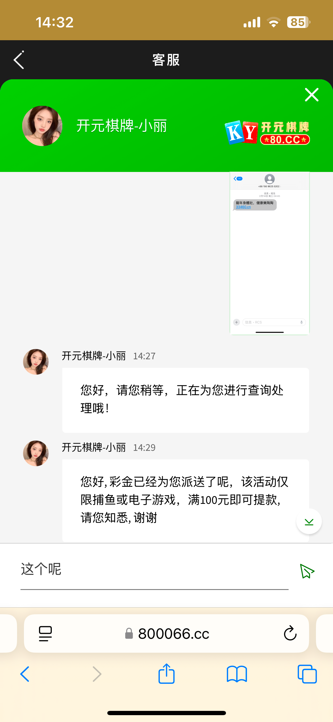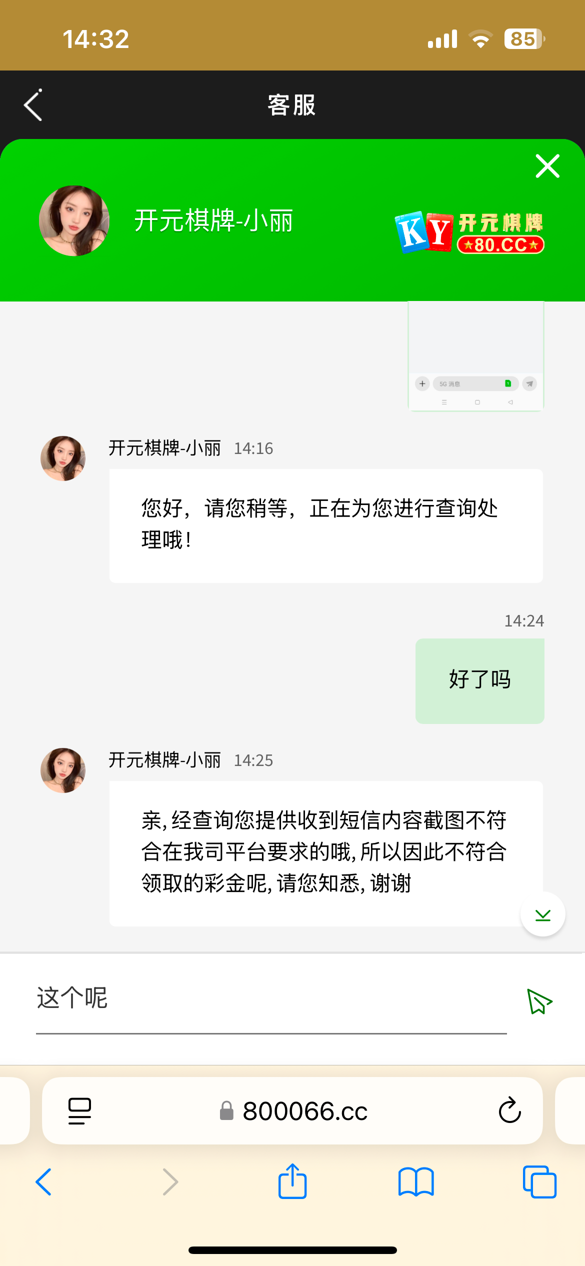 亲, 经查询您提供收到短信内容截图不符合在我司平台要求的哦, 所以因此不符合领取的彩金呢, 请您知悉, 谢谢