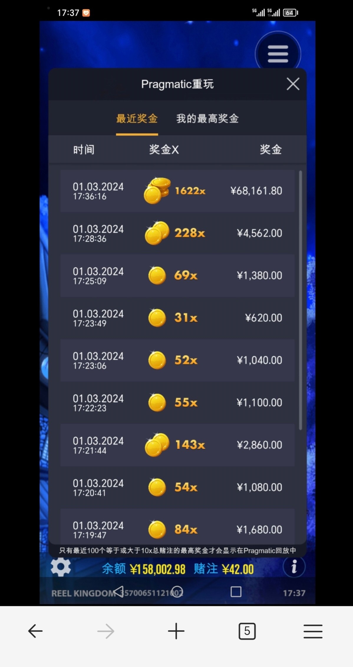 作为十几年赌狗过程跟结果都大差不大,就说说今年上岸的事,过年的时候还分币没有,应该是初五得时候把,领了点彩金当天打到一万,后面就开始一路开挂,从来不捕鱼的我拿了两万去打,个把小时打到20个,pp都是一万一把的买,三月初的时候高峰期两个支付宝收钱一天10万,应该是赢了差不多一个月,手里有59万多差2千到60万,为了这两千全送回去了3月15号开始挂,输了就到处旅游散心,到了外地也还是在酒店打狗,没有半个月全送完了就剩一点定期,说实话也是第一次拿这么多钱,其实内心也没什么太大感觉就平常消费不用看价格了,哈哈!总共就消费了几万块吧给了家里2万,你们哪天上岸了,有钱就多买定期,能不要就不要玩了吧!