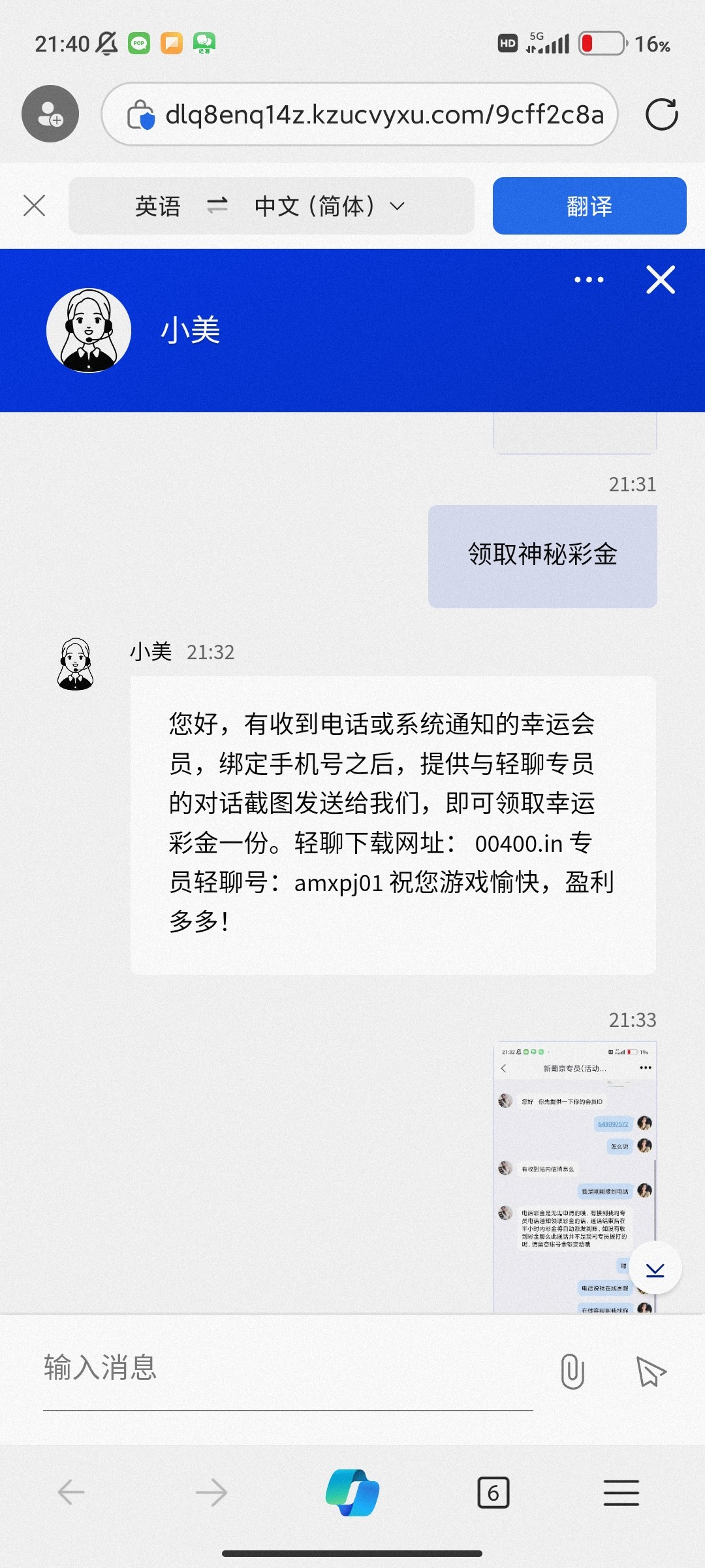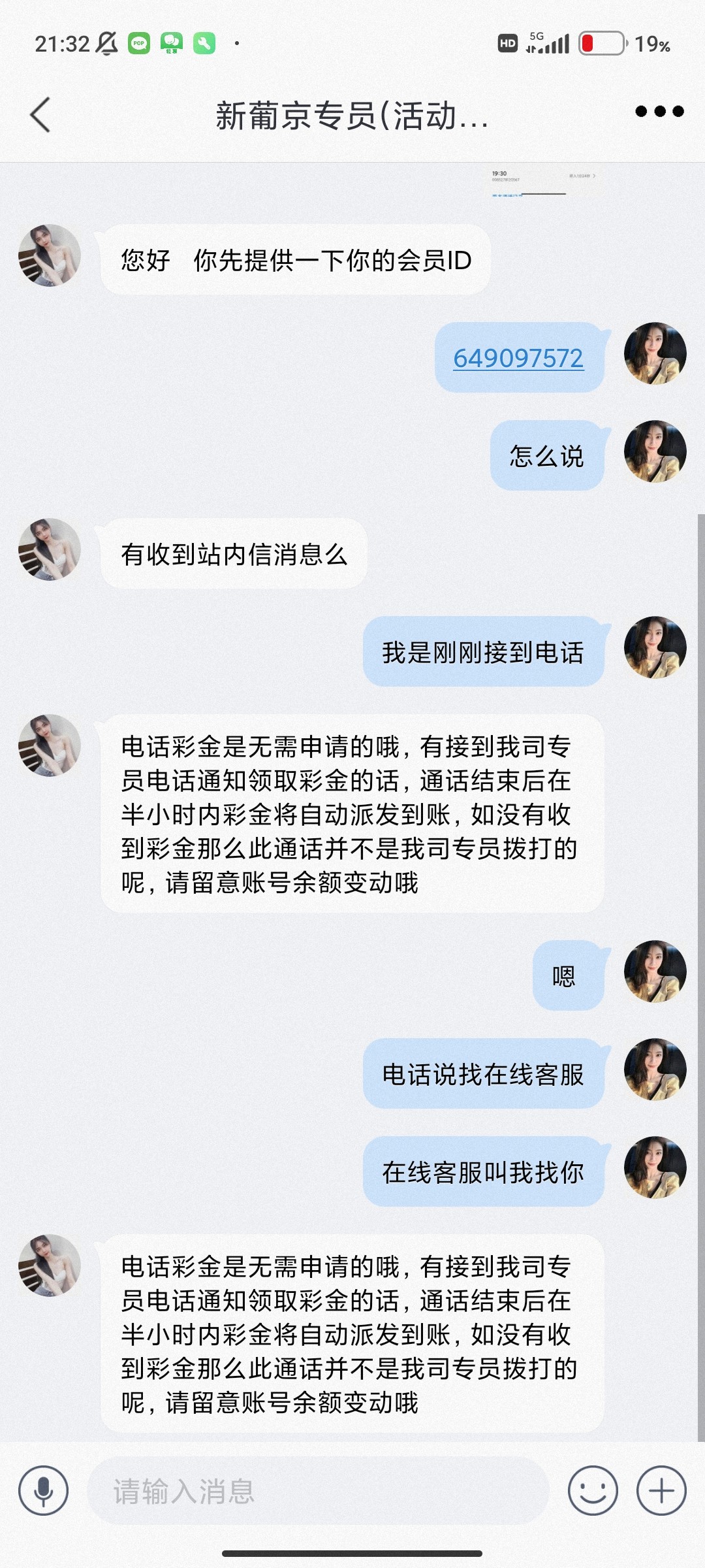 我是一开始接到电话然后叫我找在线客服领取电话免费彩金的客服说没有只有下载聊天软件然后和专员聊一下天截图给他的奇葩彩金打出来的老哥可以团个猪脚饭嘛饿死了