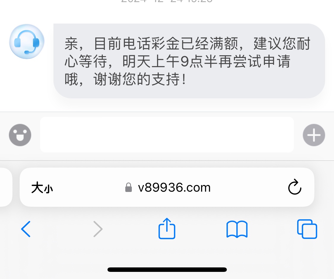 亲,我司电话彩金派送时间为早上9点到晚上7点哦,还请您耐心等待明天9点再来联系呢,客服将为您核实处理,给您带来的不便还请您多多谅解呢,谢谢