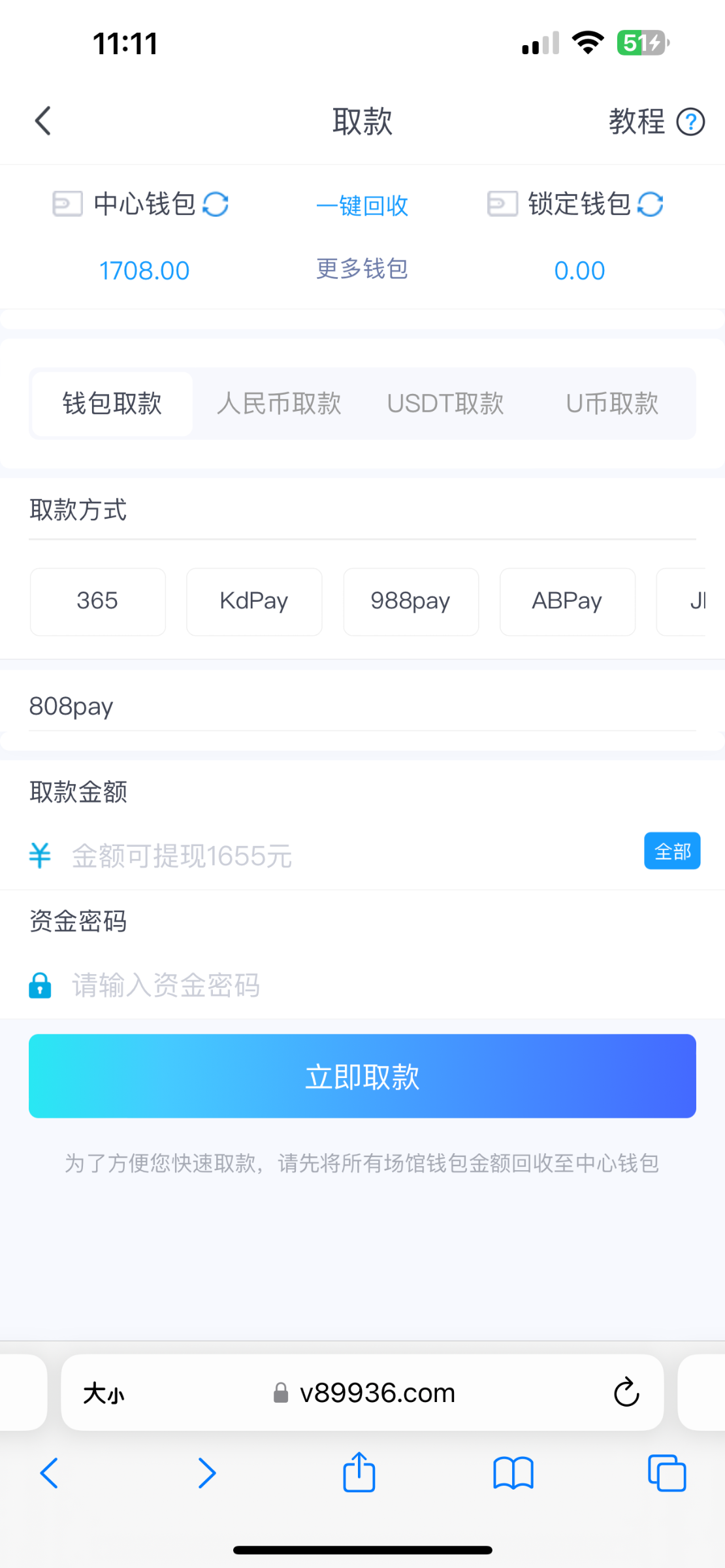 打到五百打算提,又想试试打鱼,结果差点掉进去,吃到只剩三十块,爆了一把又打到五百多,然后去拉麻将,打到六百实在打不动了,提卡秒到。