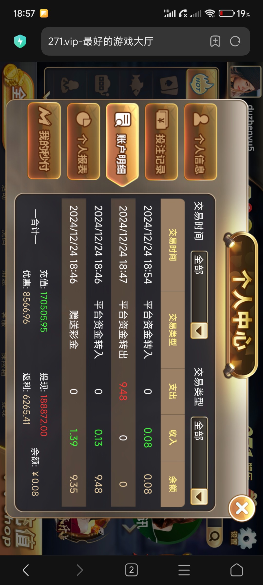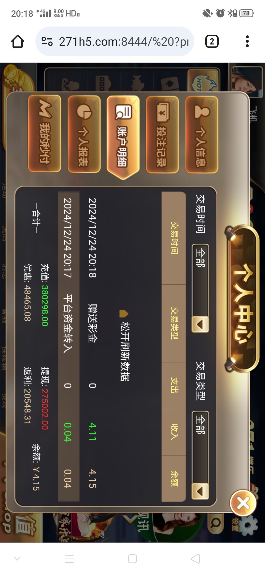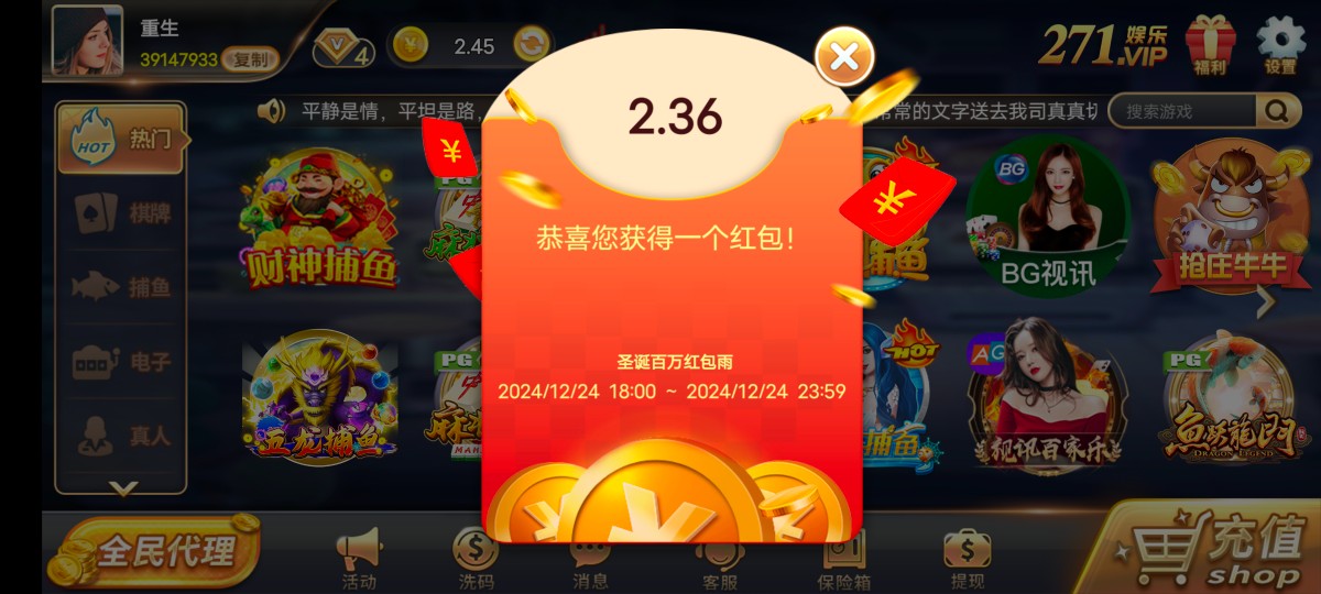 钱包我给p完了,银行卡也都是非柜,一个月没充值了,已经放弃这个台子了,这个台我已经提现不了了,牛逼啊给我4块大红包,太他妈喜欢271了,垃圾台子杀了我几年了,这回终于不用玩他了,操他妈的垃圾271