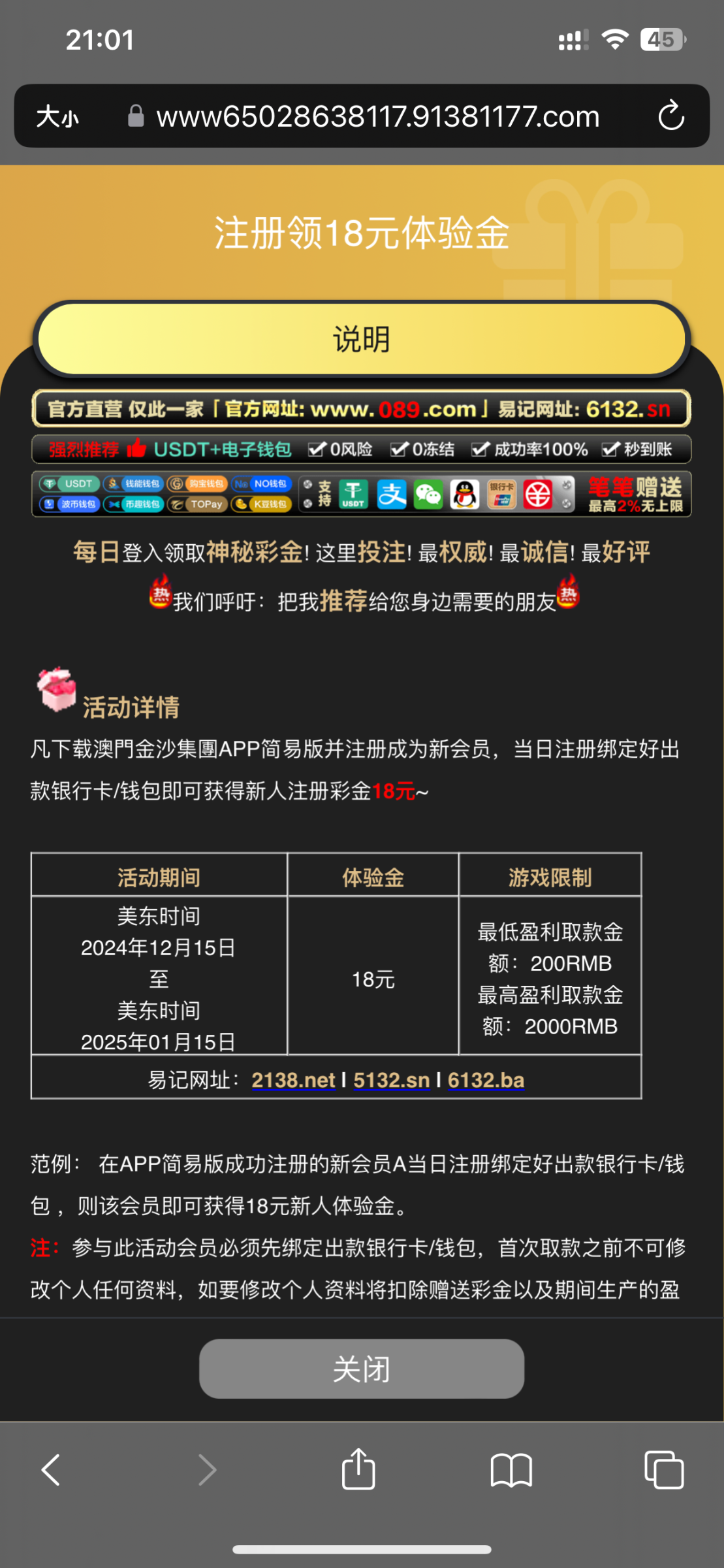 我是充值过领了俩18 注册过的也有18,没注册过的也可以去绑卡碰瓷18,自动送!089.vip
