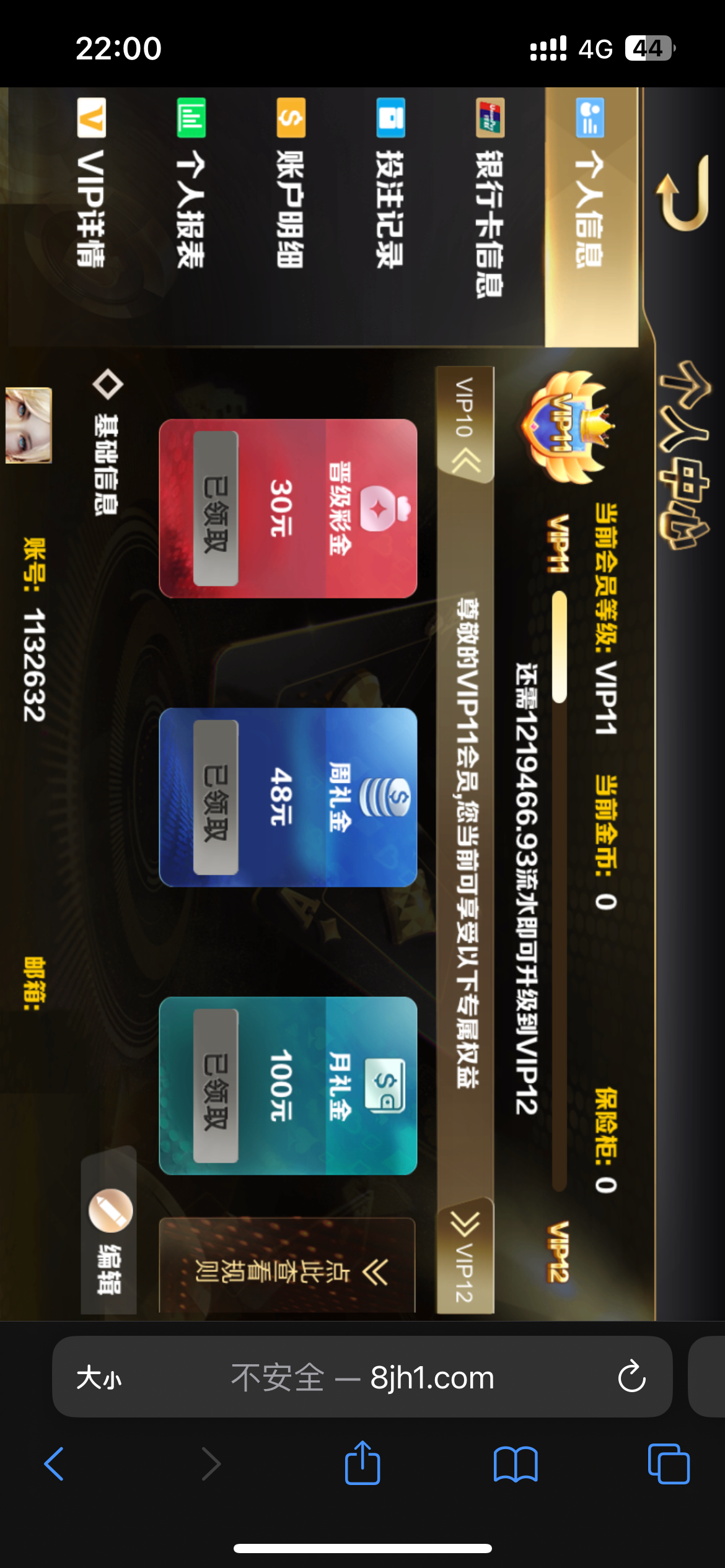 VIP11 总充值10万,提现100直接黑了。