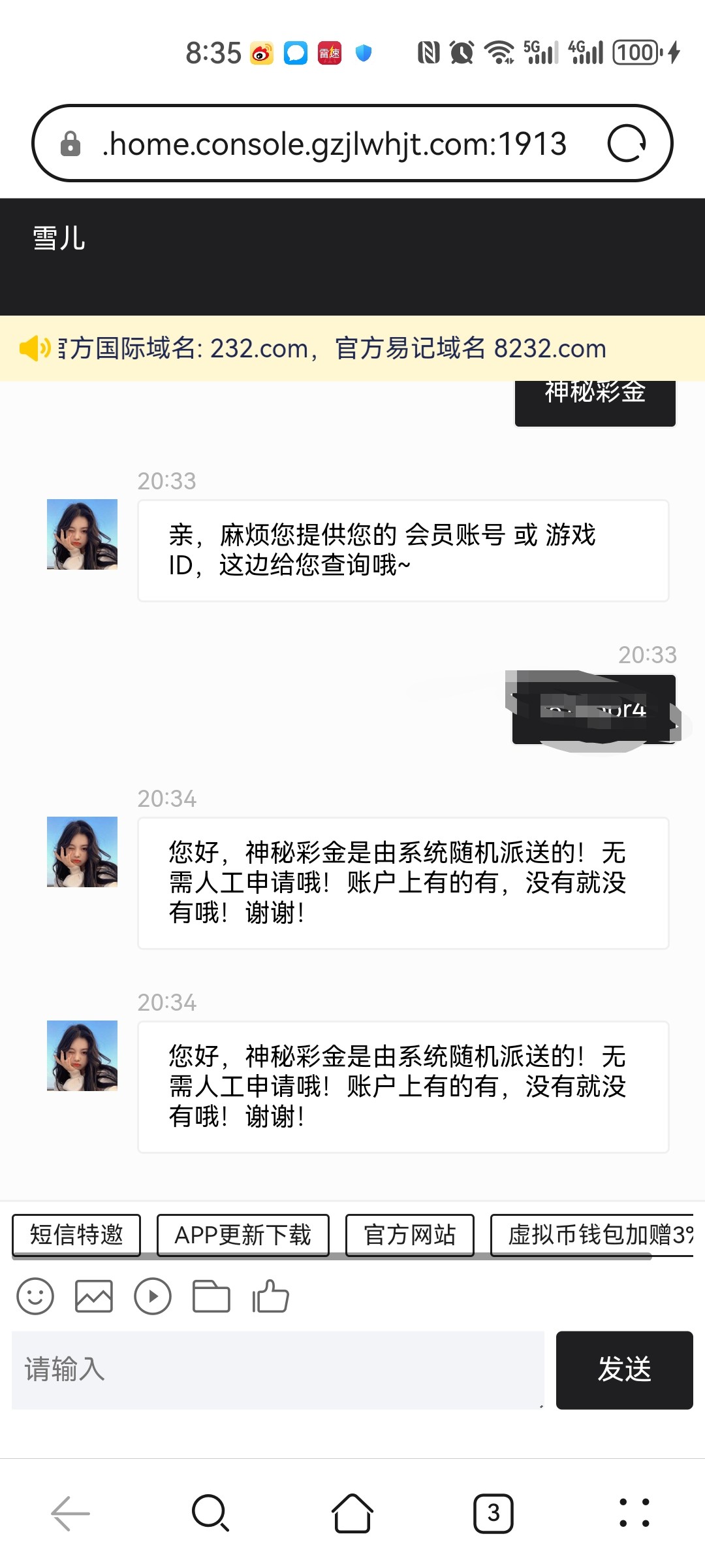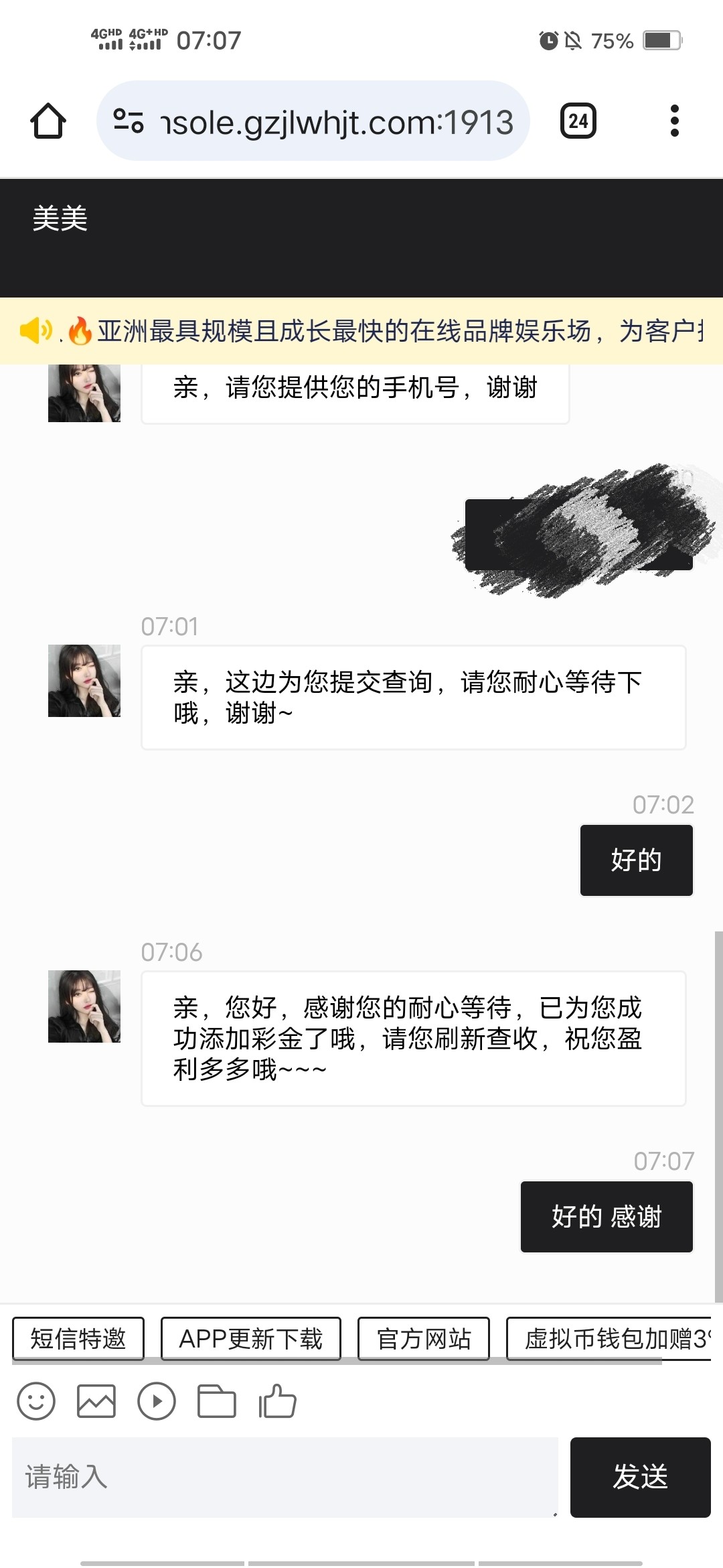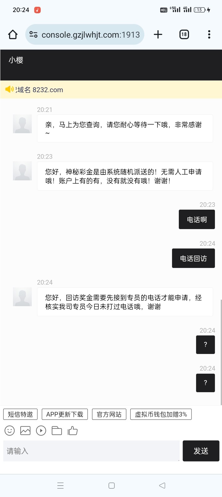 话术也不说清楚,找客服申请电话彩金,还是神秘彩金啊