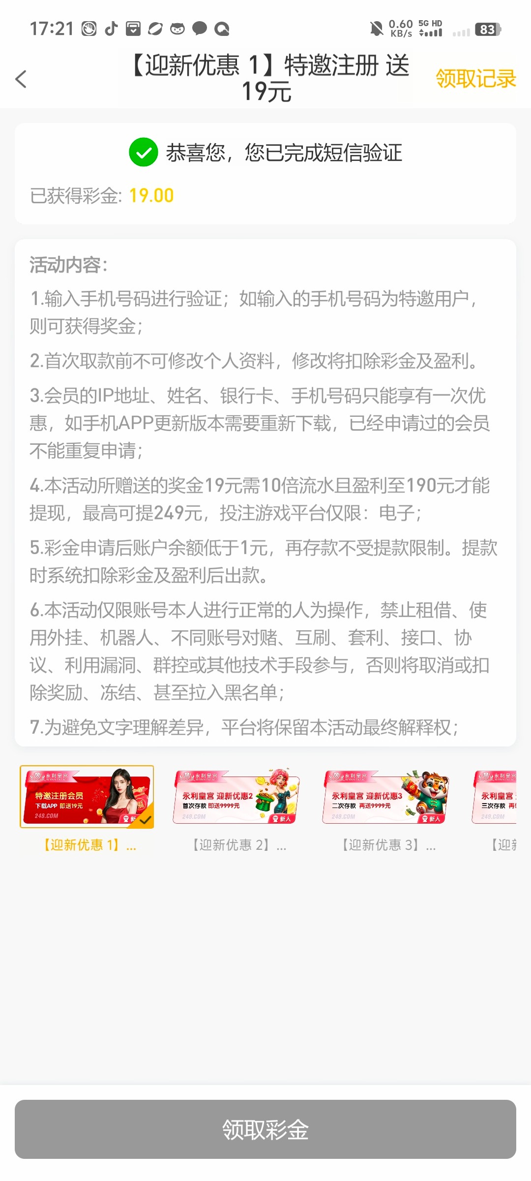 兄弟们我是收到短信的 你们也可以去碰了试试看