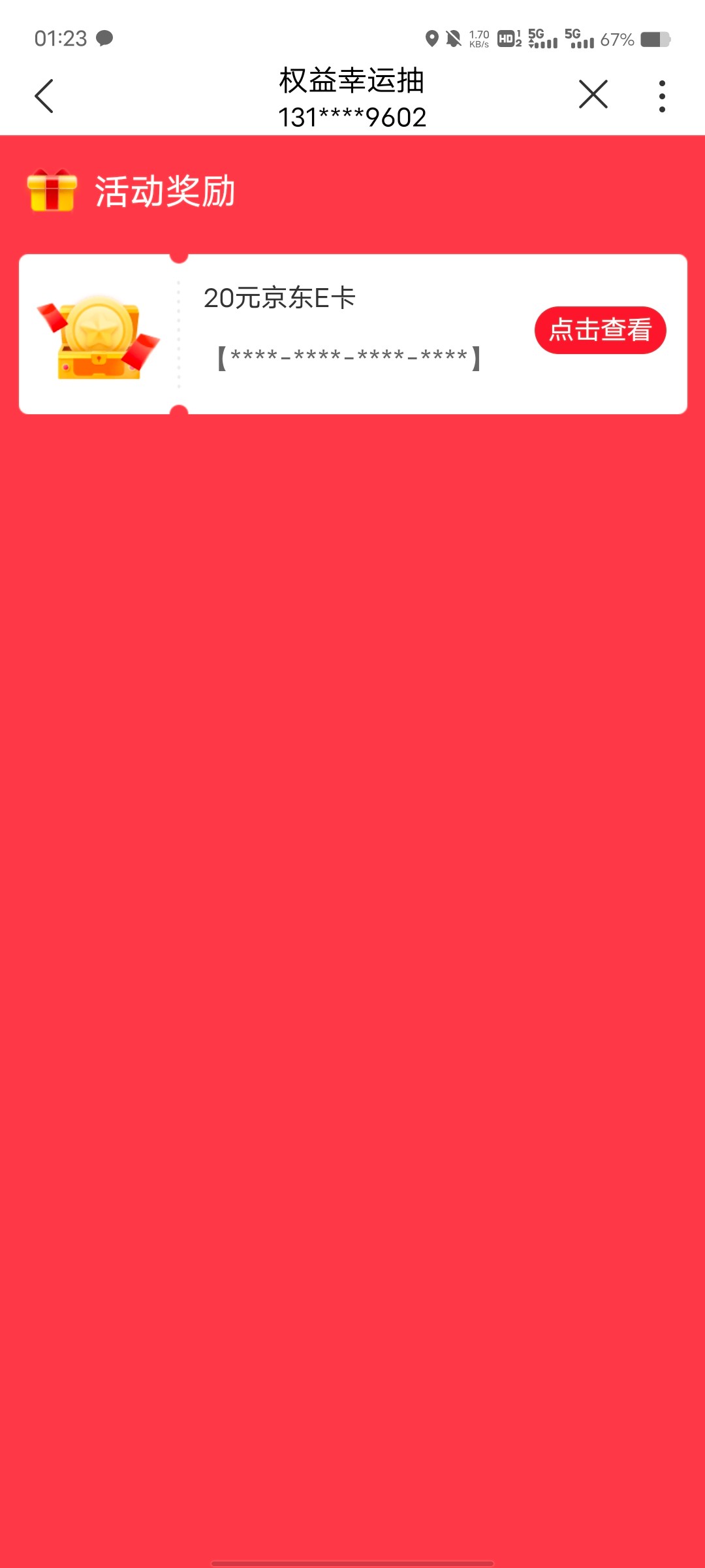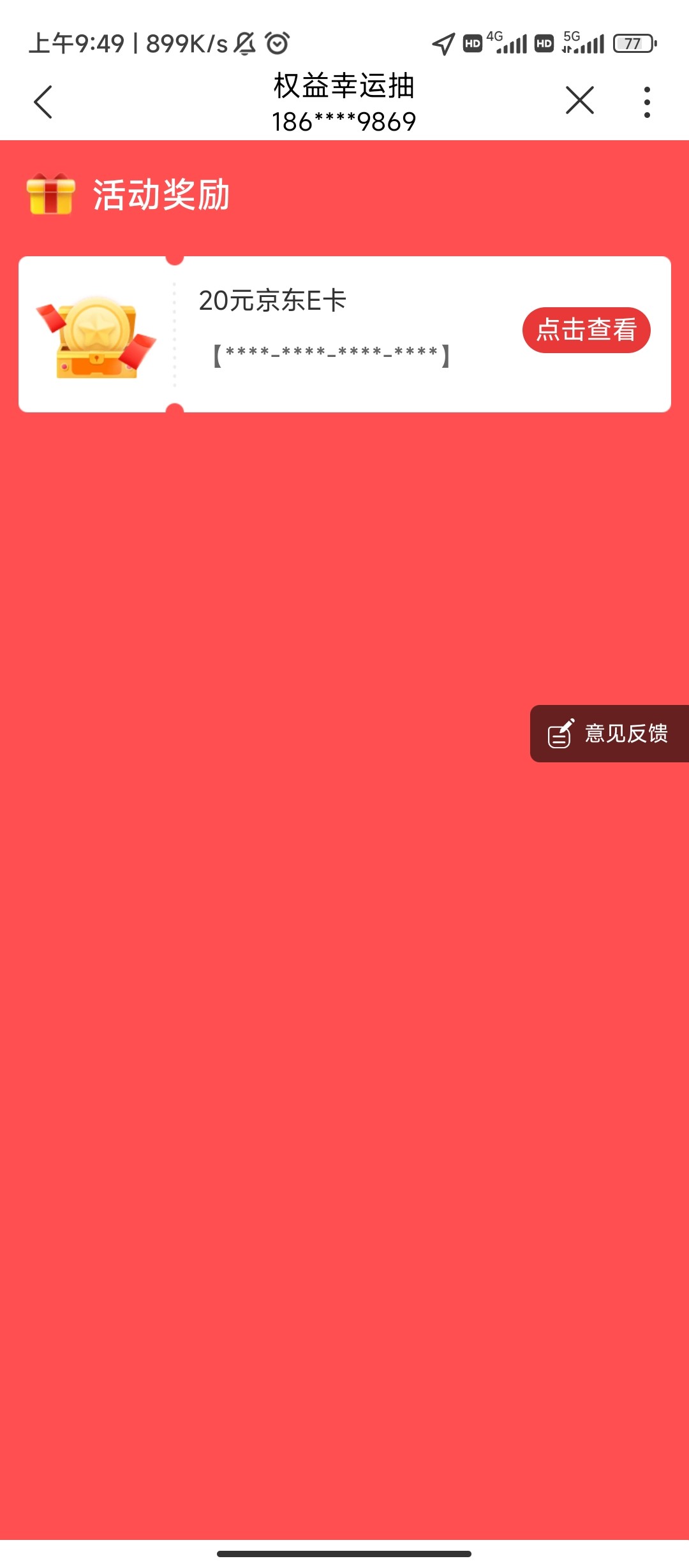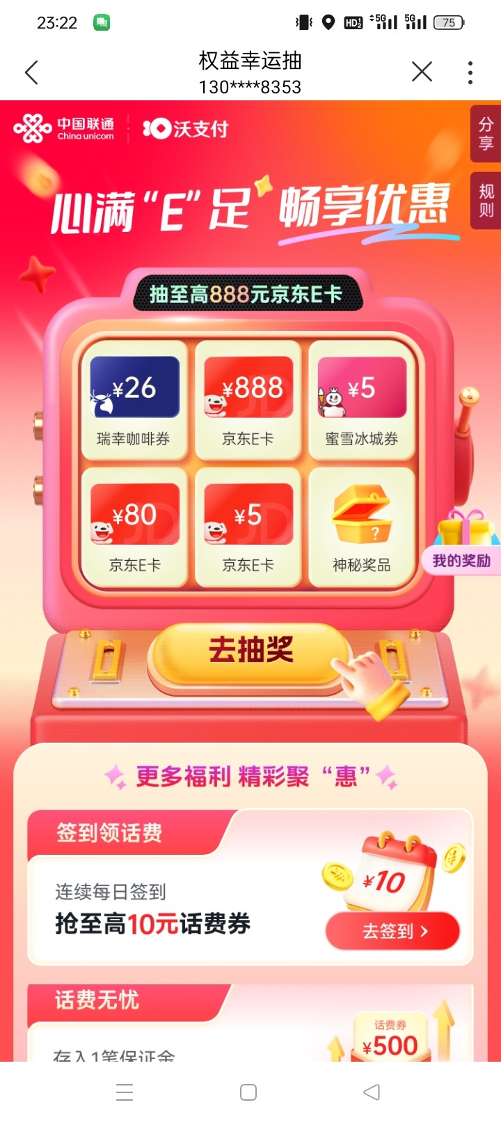 联通app钱包那里,抽奖京东E卡