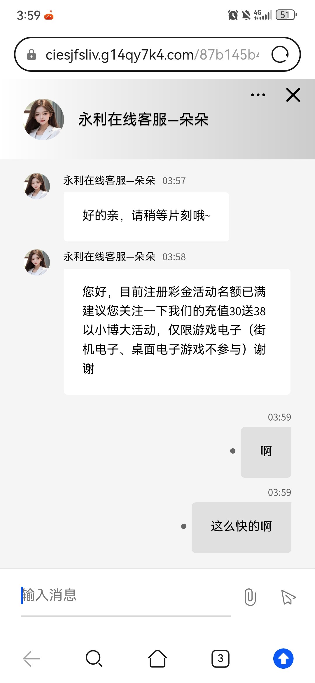 您好,目前注册彩金活动名额已满 建议您关注一下我们的充值30送38以小博大活动,仅限游戏电子(街机电子、桌面电子游戏不参与)谢谢
