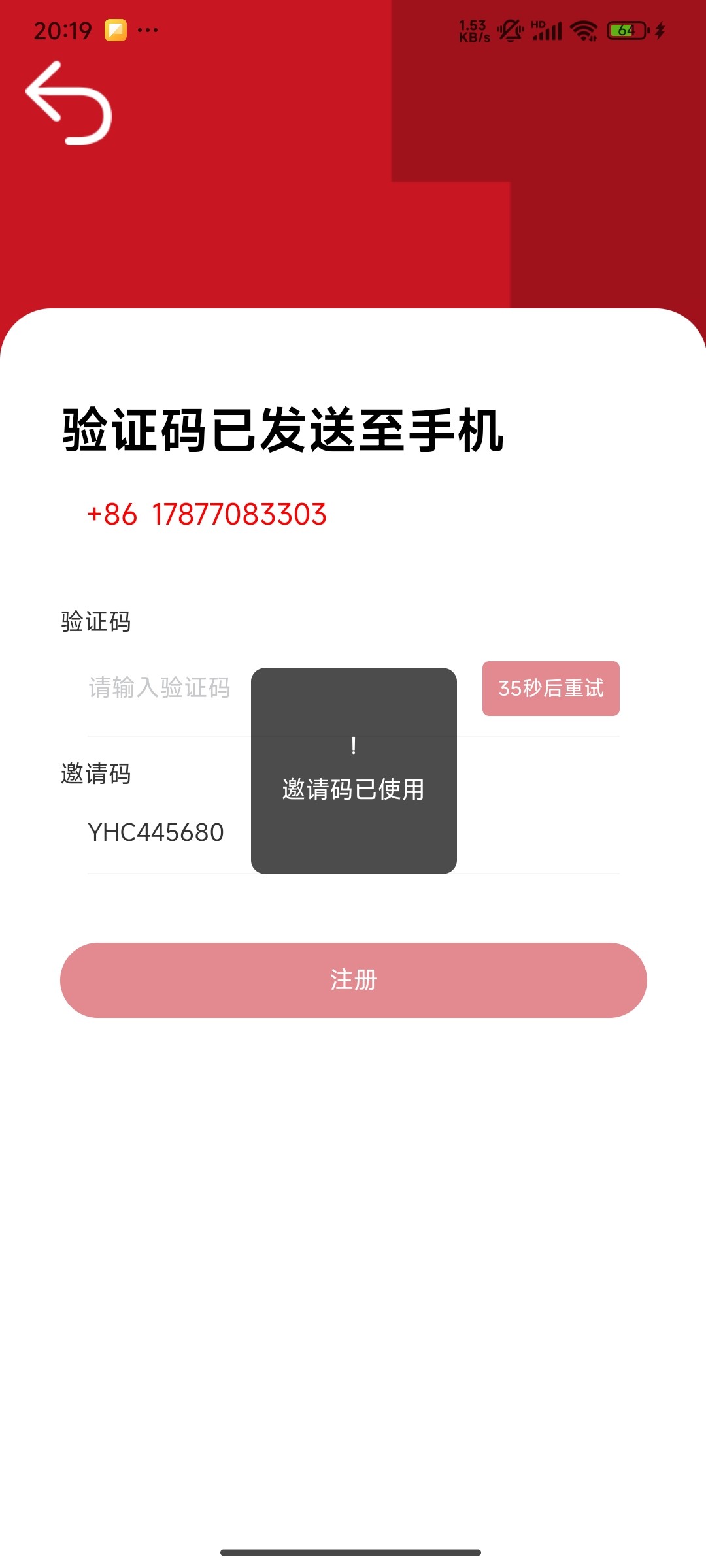 邀请码已使用