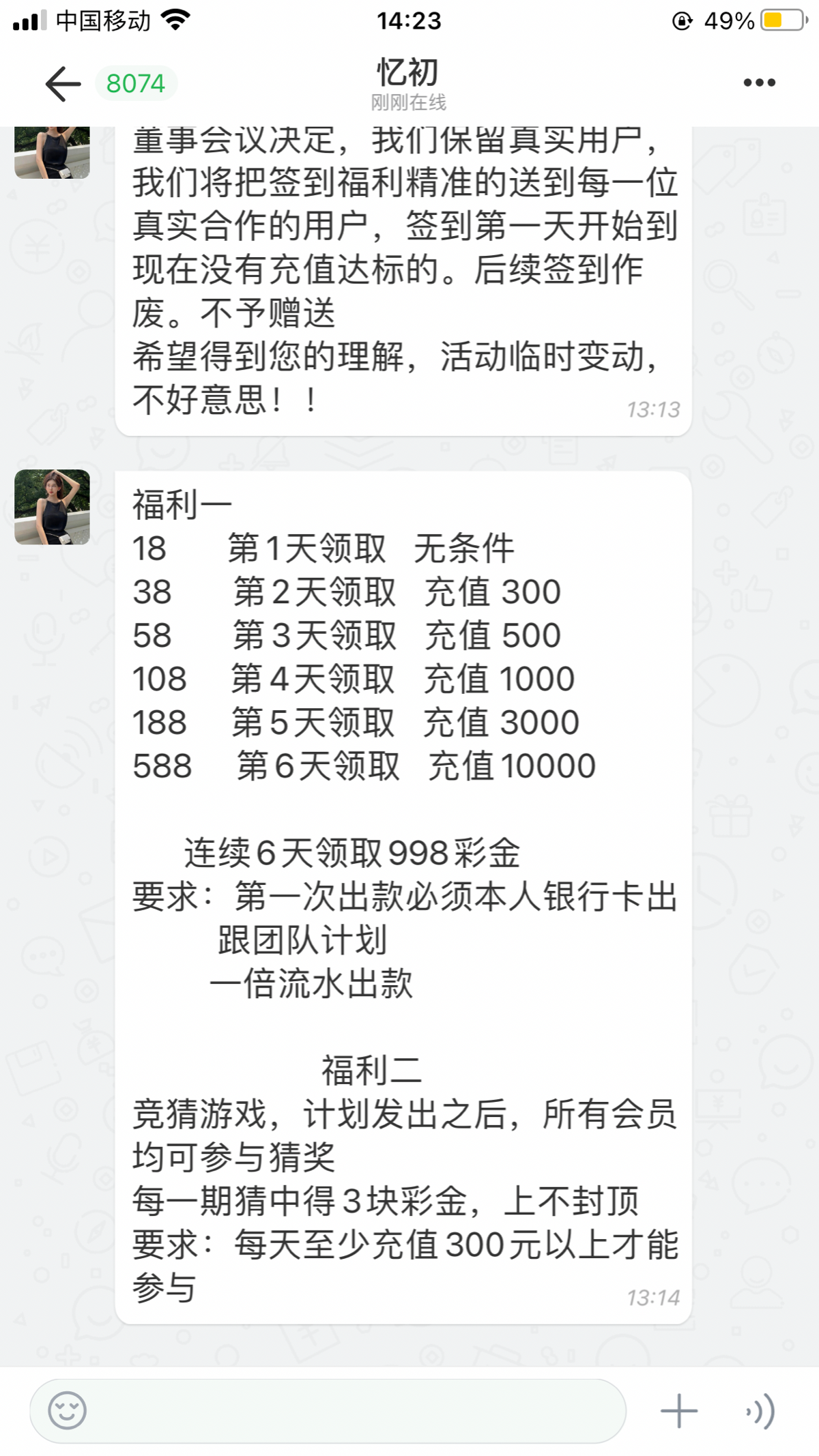 感觉跟之前的微聊一样,连送5天,但是你第一天就能打出来提款了,第二天就要充值才能继续领彩金