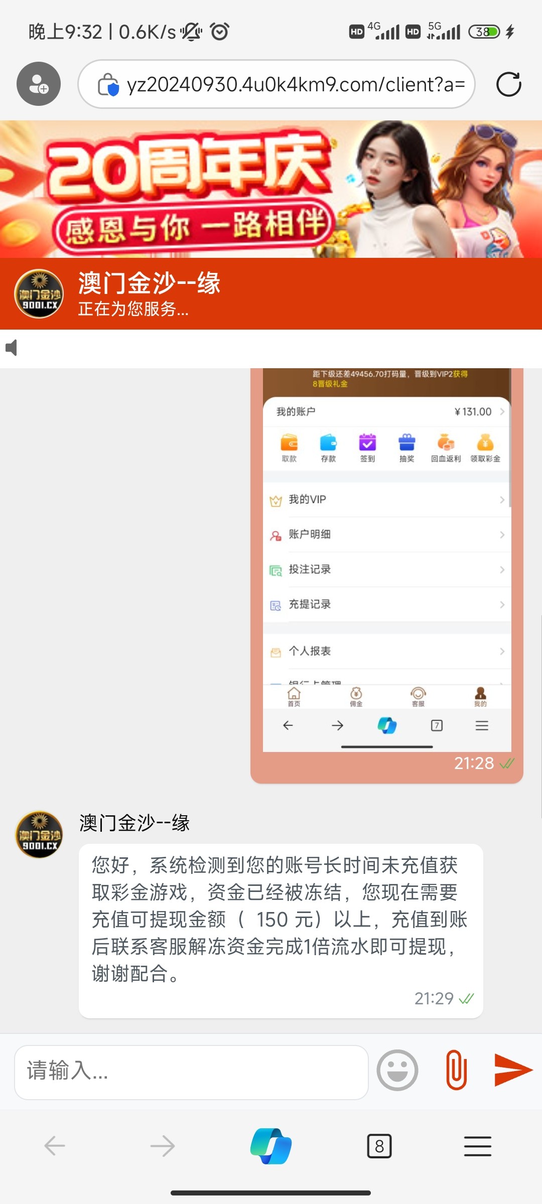 这台子好恶心 之前特邀送38 出100必须要充值 后面充了好几次一点水没有,然后新会员双倍经验 刚开始周俸禄8块月俸禄18 后面直接没有月俸禄就给个周俸禄3块 注册3年了也没有回归彩金。。。