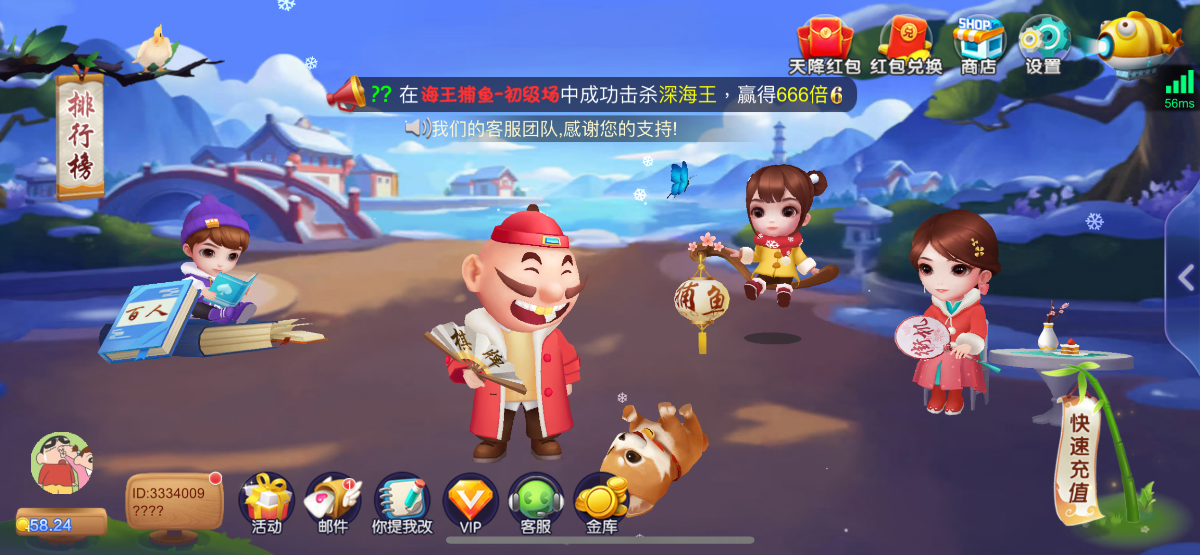 jj 棋牌有个每天签到 送 21 之前每天都打死,今天去打捕鱼,0.1 直接爆了 3500 倍 我都懵了刚进去就给了 350,下分不知道能不能到,有号的去看看,联系在线代理就能签到了 网址 jj36.com