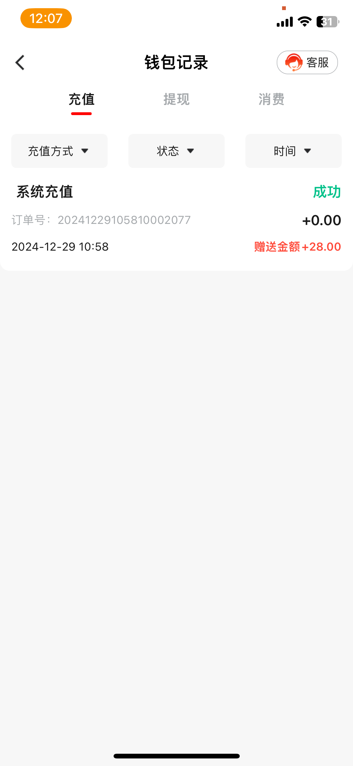 不能充值,充值多少死多少