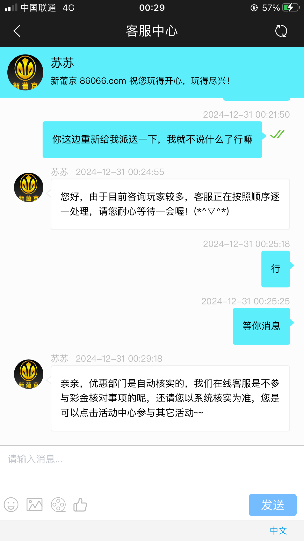 全是蛋蛋 ▶ zwk111 1676还可以 每年都去问客服要2次红包 说输光了 没钱吃饭了 基本上都是给88 一倍水出款 2024-12-31