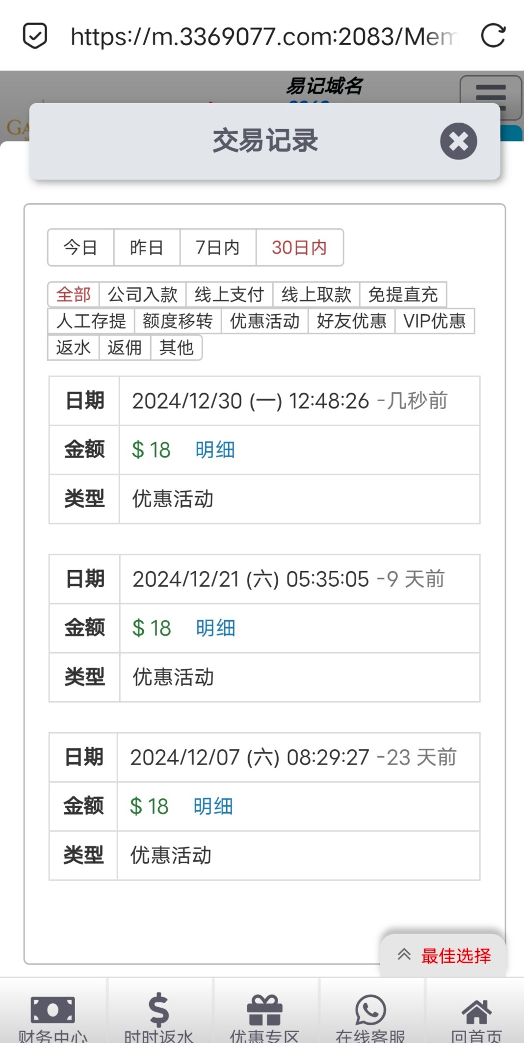 充值过的去看下,我刚才登录直接弹出来一键领取,没接到电话,这个月送了三次了,我一两个月没充值了 地址 3369.com