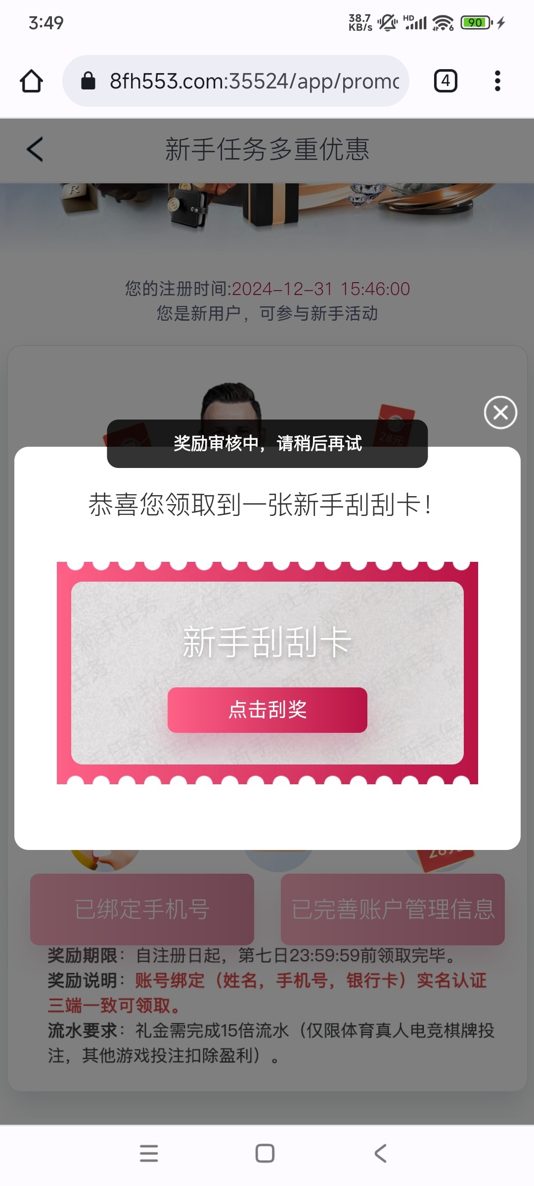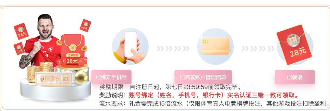 注册绑定了银行卡就可以领取了 秒到 这个最高只能提款100 超过100的要提才要存相同金额打1倍水提100不需要存款
