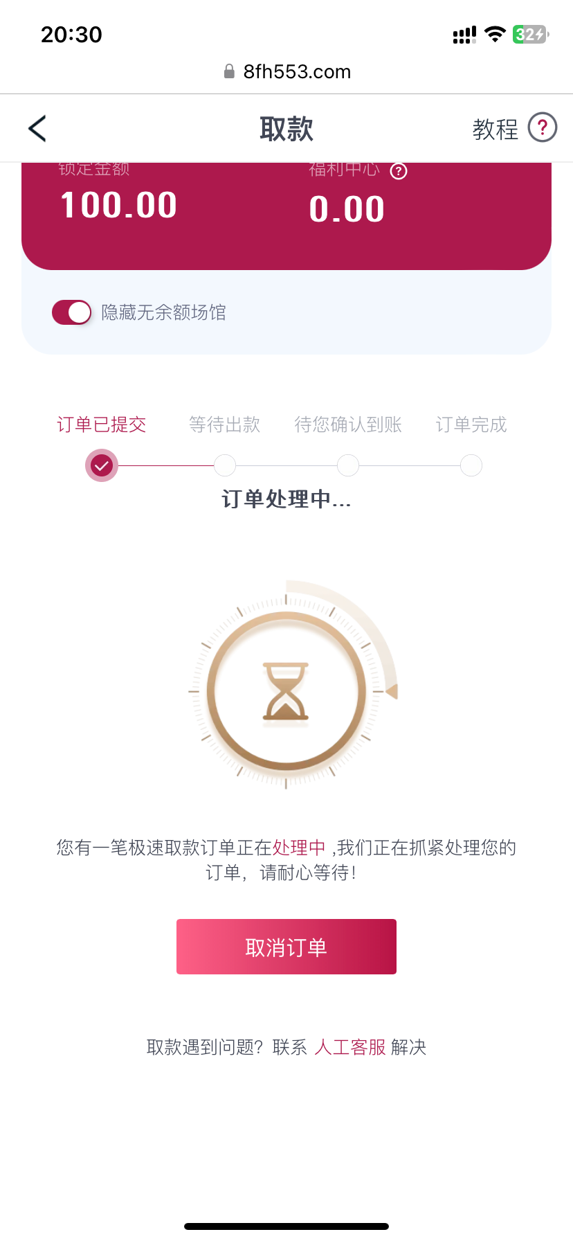 老哥 这个最高只能提款100 超过100的要提才要存相同金额打1倍水 提100不需要存款