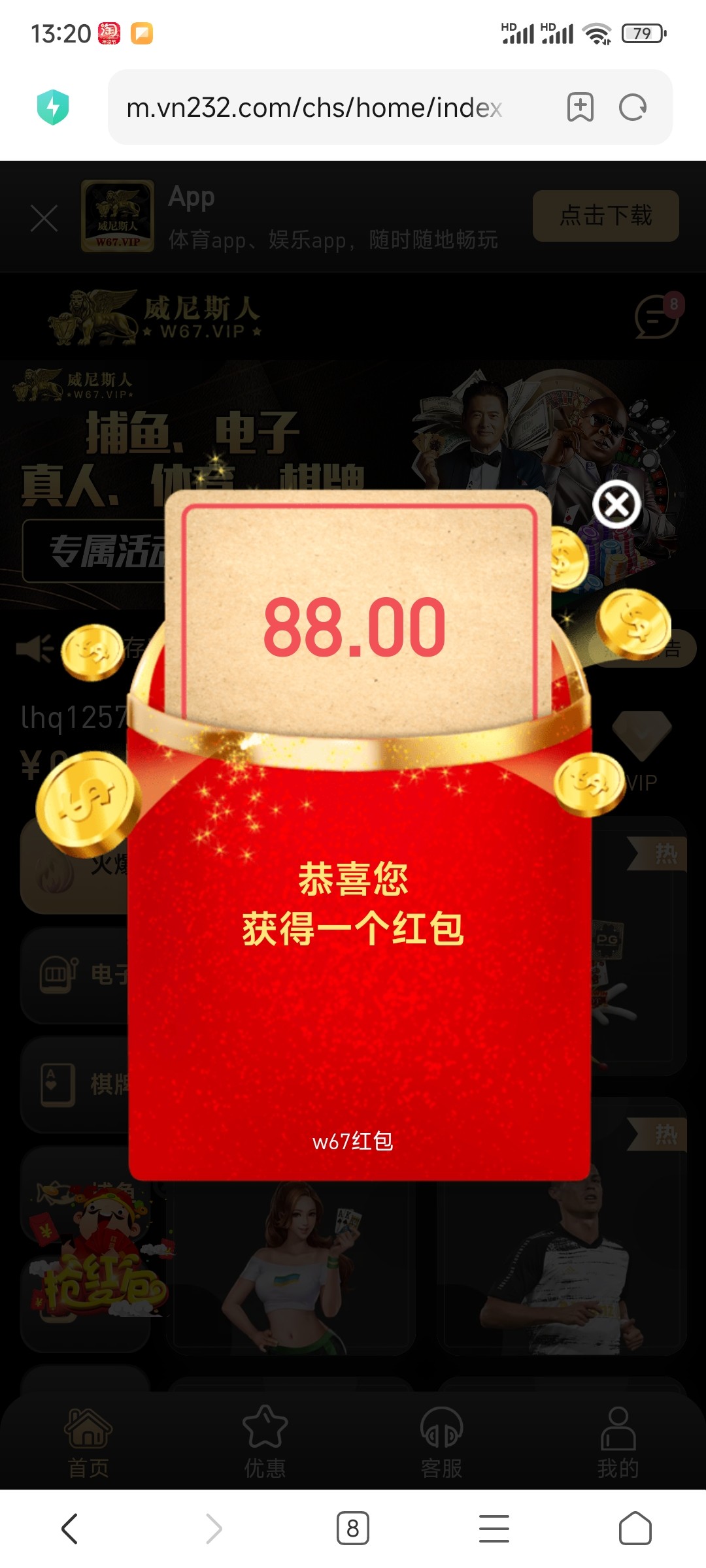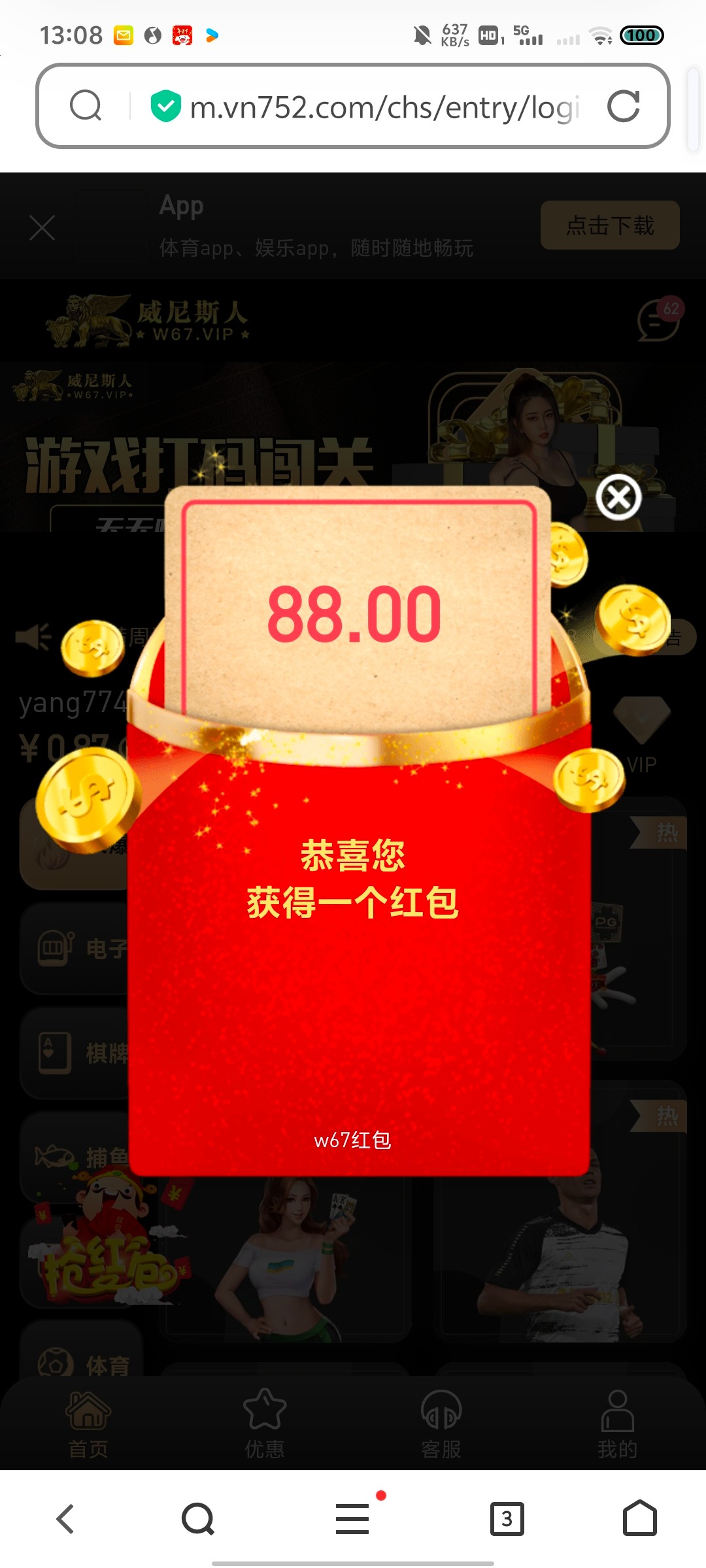 这个平台很杀,不建议充值,送了88没发出来,送了好几次都打不出来,控分很厉害